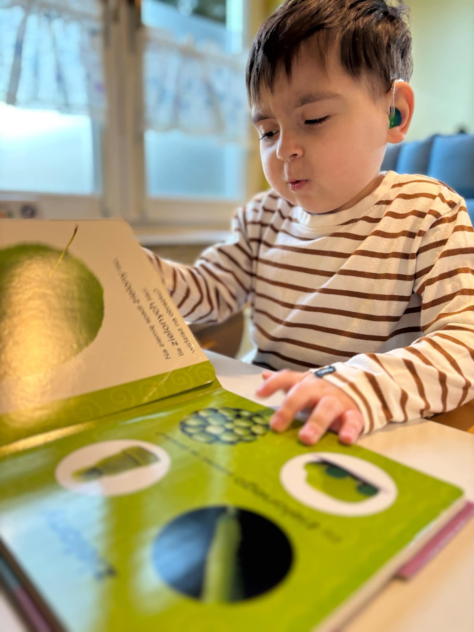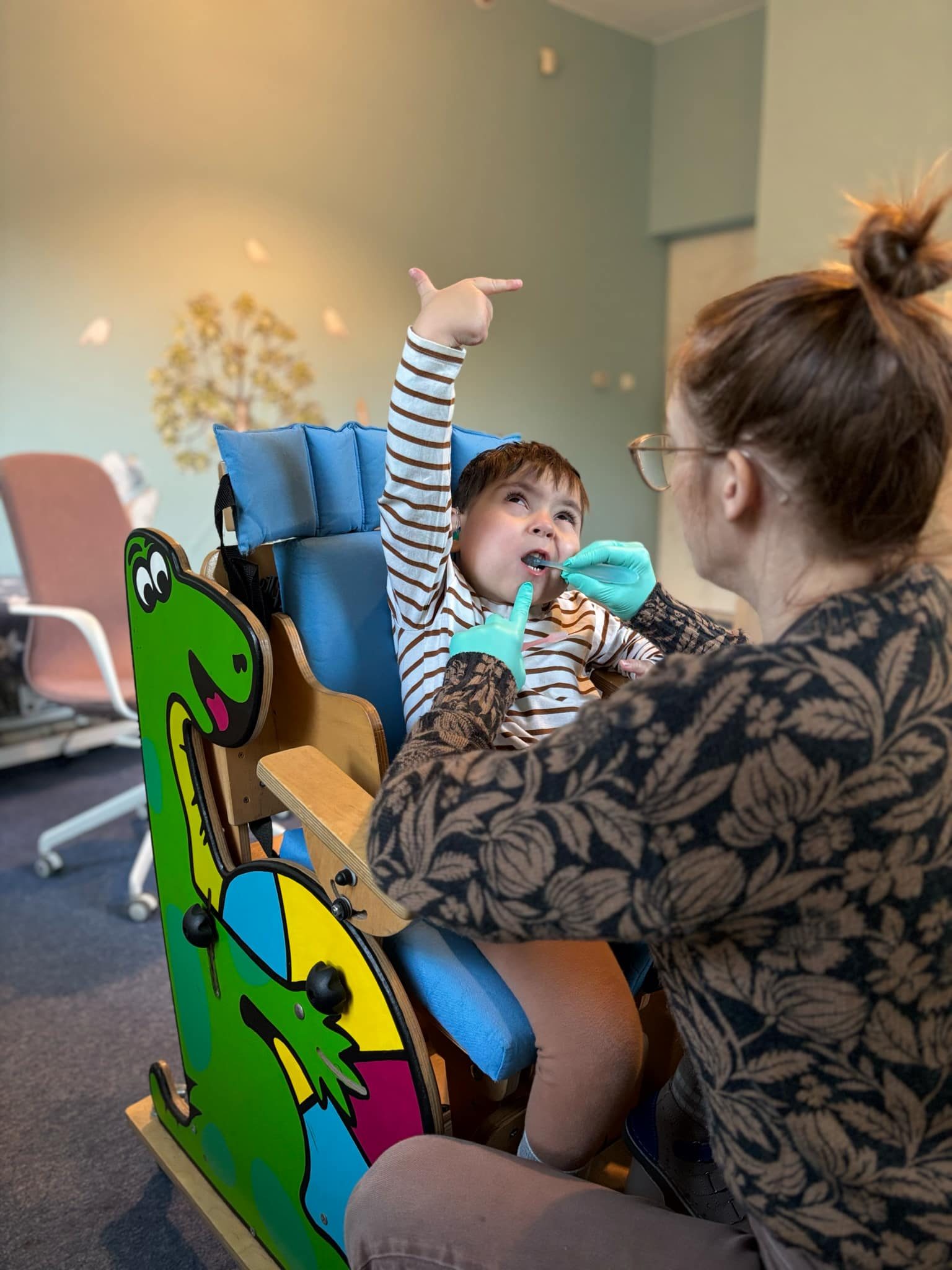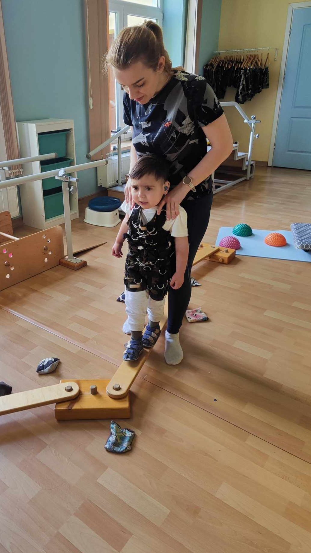 Julek uczęszcza na rehabilitację prywatnie, a także korzysta z Wczesnego Wspomagania Rozwoju, co obejmuje fizjoterapię, zajęcia z surdologopedą, terapię ręki i integrację sensoryczną. Choć jego mowa jest ograniczona przez umiarkowany niedosłuch (70 dB), Julek stara się jak może – wymawia podstawowe słowa, jak „mama”, „tata” czy „papa”. Cały czas ćwiczymy z nim, licząc na kolejne postępy.