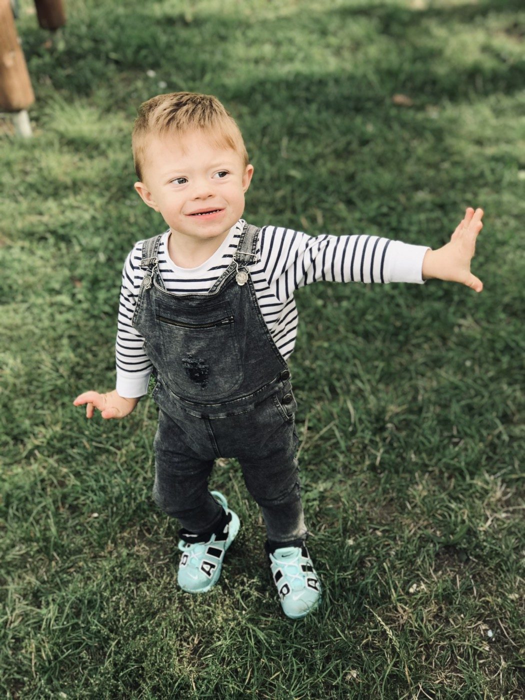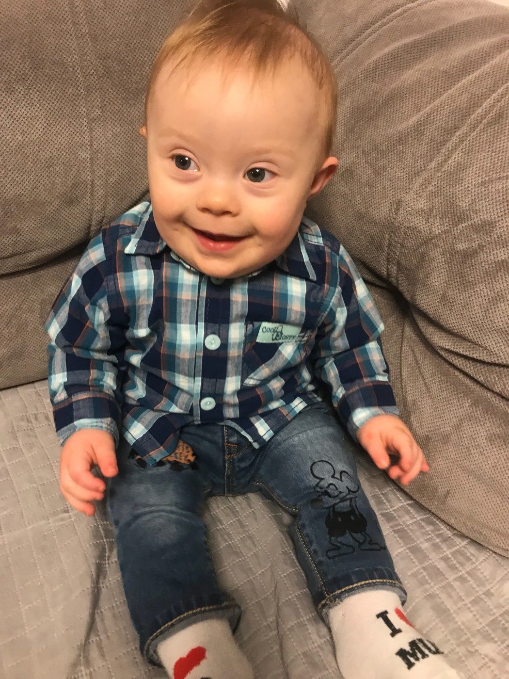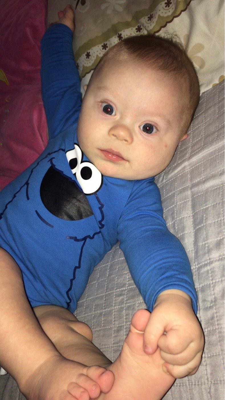 Rozwijam się pięknie, choć nie jest mi łatwo bo mam dodatkowy chromosom, który troszkę mi w tym przeszkadza, ale nie poddaje się i mocno prę do przodu. W tym roku dołączyłem do grona dzielnych przedszkolaków. Nie płaczę i super bawię się z rówieśnikami. Biegam, śmieje się i rozrabiam zupełnie jak oni. Za to słabiej mówię…