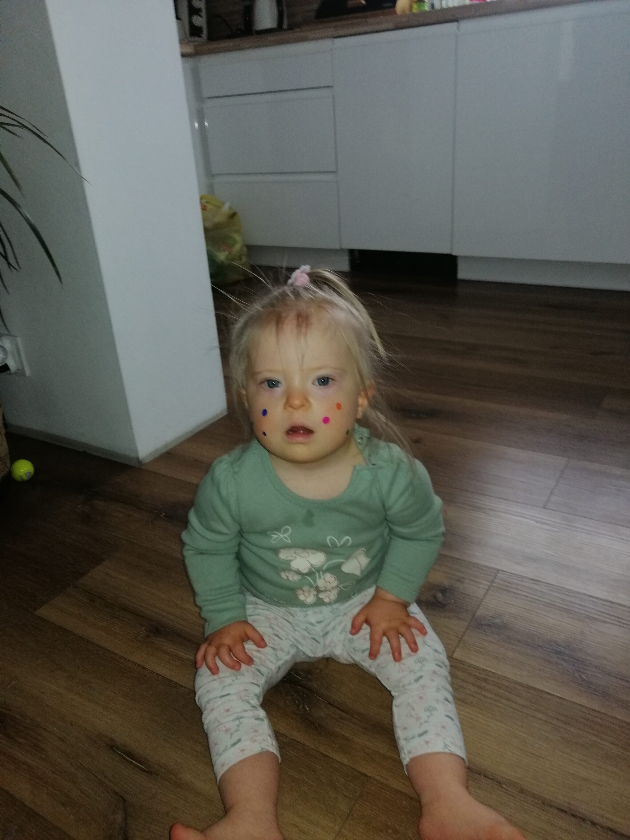 Zarówno ciąża, jak i poród przebiegły bez większych komplikacji, co w żaden sposób nie przygotowało nas na diagnozę trisomii 21 (zespołu Downa), którą usłyszeliśmy kilka tygodni po narodzinach naszej córeczki. Wiedzieliśmy jednak, że nie mamy czasu do stracenia, dlatego natychmiast rozpoczęliśmy walkę o jak najlepszą przyszłość dla Justynki. Dalsze badania wykazały, że wiodącej wadzie genetycznej naszej córki towarzyszą również inne schorzenia, takie jak niedoczynność tarczycy i hipotonia (wiotkość mięśni). Obecnie rzeczywistość Justynki to regularne wizyty w wielu specjalistycznych gabinetach (m.in. neurologicznym, kardiologicznym, okulistycznym, laryngologicznym, hematologicznym, neurologopedycznym, psychologicznym), gdzie, poza regularnymi badaniami kontrolnymi, ma również prowadzoną wielokierunkową terapię rozwojową. Od połowy 2023 roku jesteśmy pod opieką okulisty i tyflopedagoga. Ćwiczymy wzrok i wzmacniamy mięśnie oka. Jako rodzice pragniemy i ze wszystkich sił dążymy do tego, aby nasza córka mogła cieszyć się w przyszłości jak największą samodzielnością. Droga przed nami jest długa i kręta, wierzymy jednak, że z Państwa wsparciem uda nam się osiągnąć zamierzony cel. Państwa pomoc naprawdę wiele dla nas znaczy.