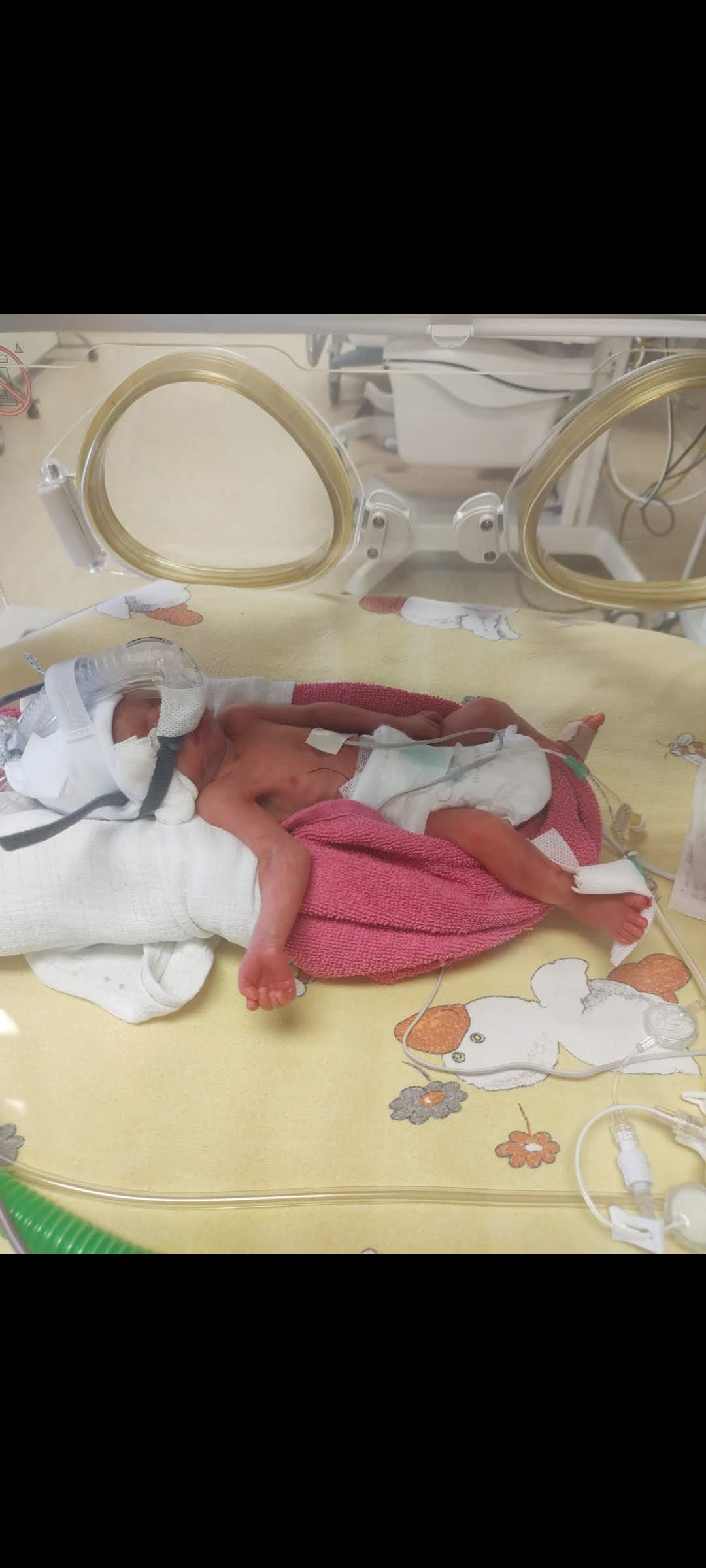 Jestem Kaja, urodziłam się 07 kwietnia 2022 roku w 28 tc z, ważąc zaledwie 720 gram. Od początku walczyłam każdy oddech, każdą minutę swojego życia. W szpitalu spędziłam 79 dni, już pierwszych dniach pojawiły się problemu oddechowe, respirator, cepap, pompy infuzyjne, wszystko było podpięte. Pojawiła się wtedy dysplazja oskrzelowo- płucna oraz odma. Jestem silna więc poradziłam sobie z tym. Kiedy walka z inkubatorem się zakończyła pozostawiając po sobie wspomnienia pojawiły się kolejne wyzwania, kontrolę lekarskie, kolejne diagnozy oraz rehabilitacji, z którymi zmagam się do dzisiaj. Niedotlenienie okołoporodowe spowodowały u mnie Mózgowe Porażenie Czterokonczynowe, które zostanie u mnie do końca. Zdiagnozowano u mnie diplegie spastyczna kończyn dolnych, co powoduje, że chodzę, biegam na paluszkach często się potykając i przewracając. Intensywna rehabilitacja pomaga mi w codziennym funkcjonowaniu. W wieku 3 lat zdiagnozowano zaburzenia integracji sensorycznej z którą wiążą się kolejne wizyty u specjalisty.