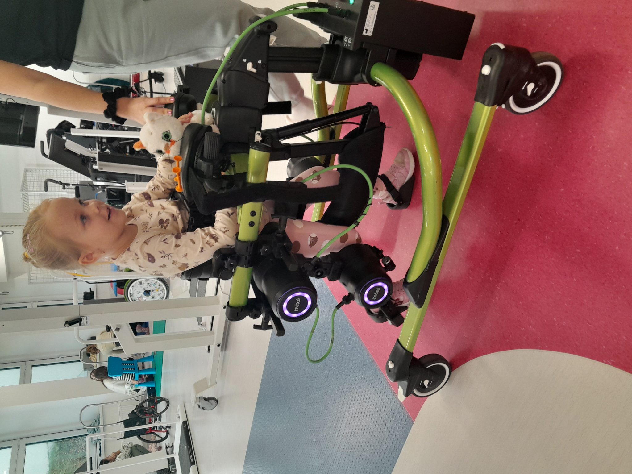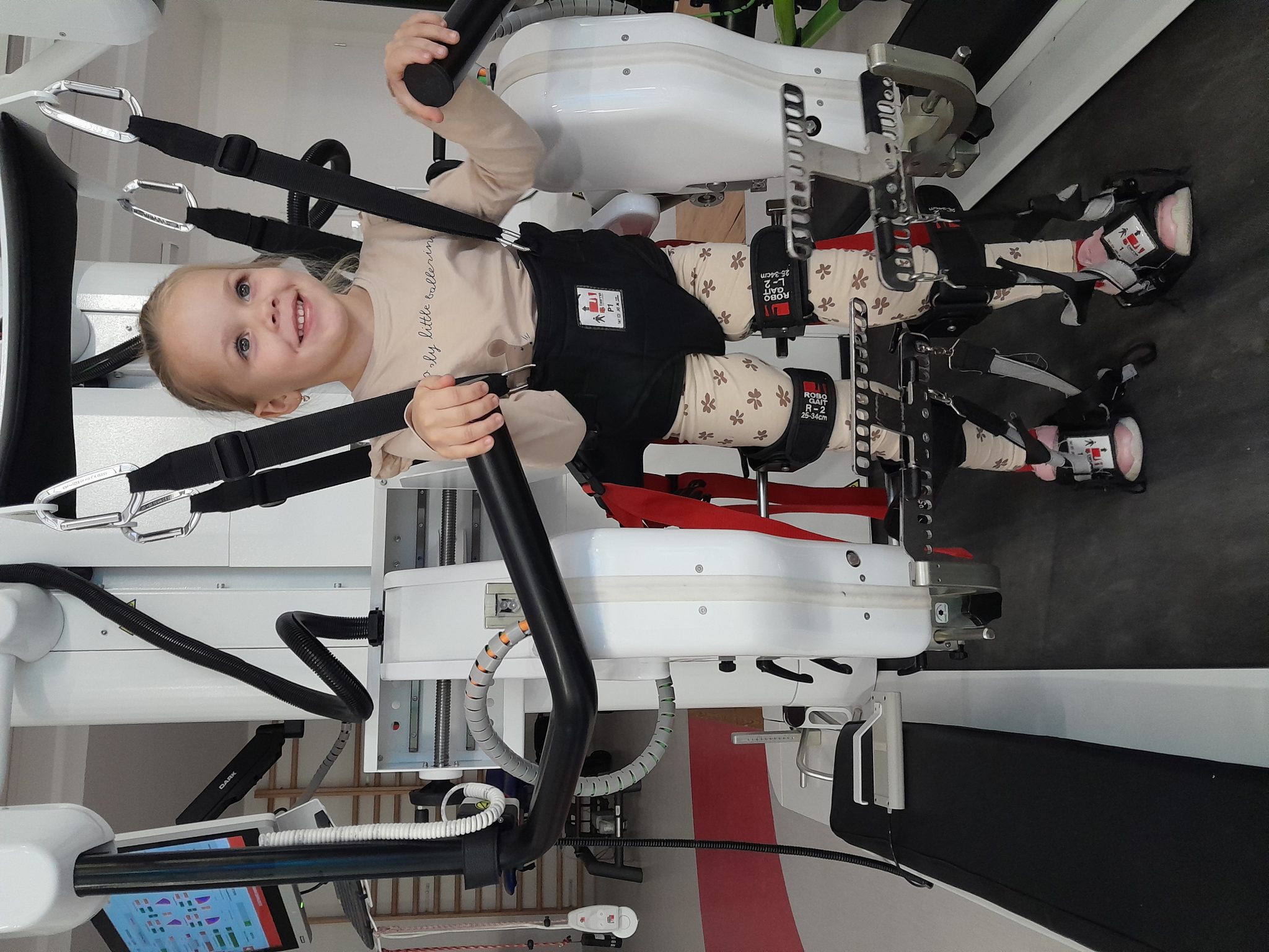 Karinka, mimo swojego wieku, nie potrafi biegać ani skakać, ma problemy z wchodzeniem po schodach i wstawaniem z podłogi, a dłuższe spacery sprawiają jej ogromną trudność. Nadal się potyka, przewraca, na spacery jeździ w wózku inwalidzkim. Jesteśmy świadomi tego, iż Karinka będzie wymagała kosztownej rehabilitacji już do końca życia…