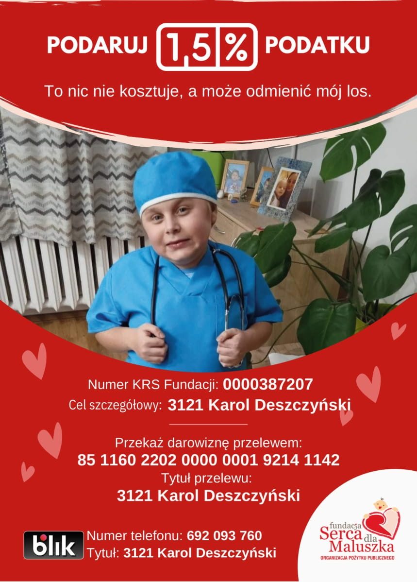 W rozliczeniu PIT wpisz numer KRS Fundacji „Serca dla Maluszka”: 0000387207,