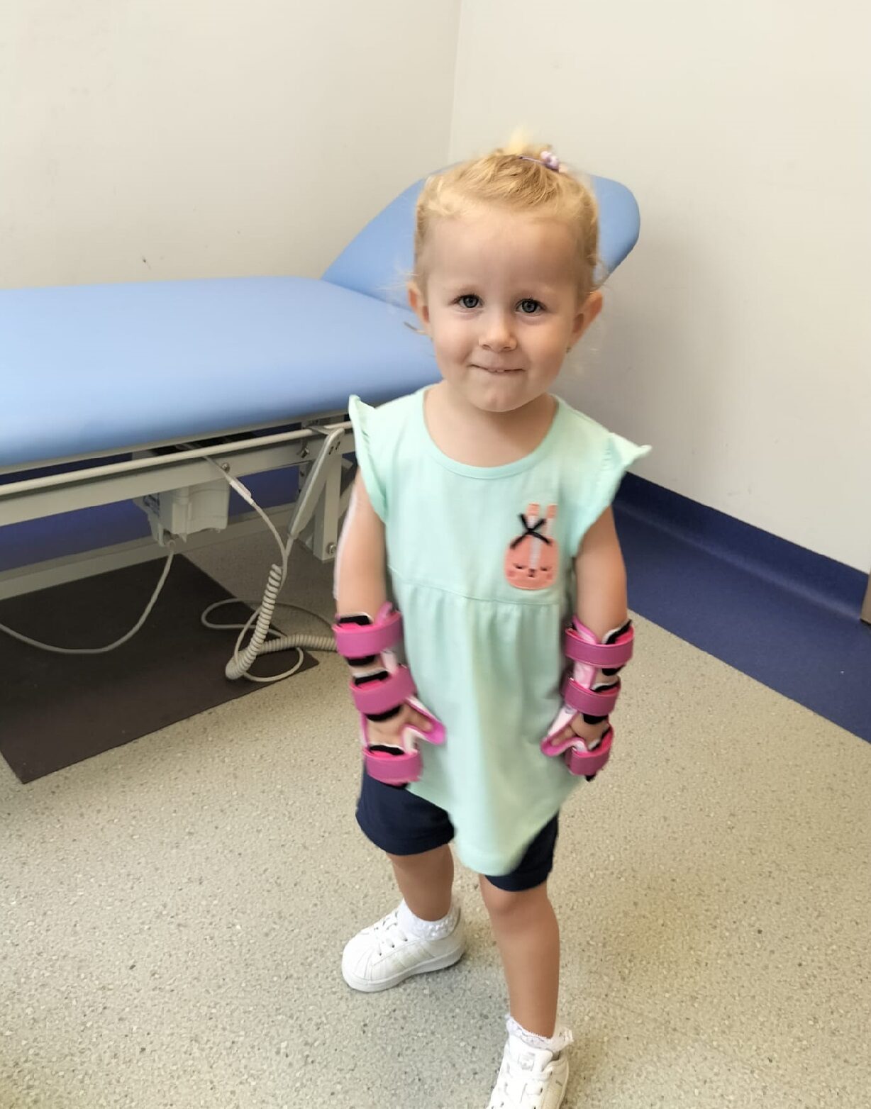 Karolinka przyszła na świat 9 marca 2020 roku i zaraz po jej narodzinach stwierdzono dwustronną nieprawidłowość kończyn górnych. Wstępne rozpoznanie – artrogrypoza, którą potwierdził lekarz ortopeda.