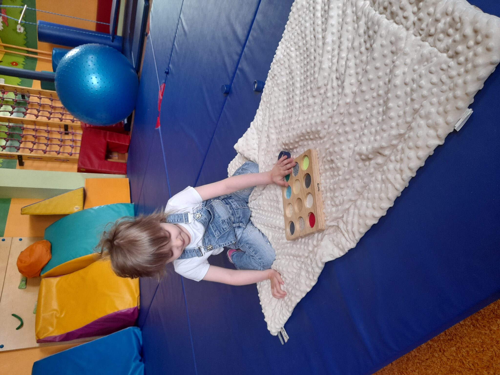 Potrafię pokazać, że chce mi się jeść i pić. Lubię bawić się klockami i ostatnio nauczyłam się wozić lalkę wózkiem. Robię to na kolanach mamy lub taty i sprawia mi to ogromną radość. Mój brat zawsze potrafi mnie rozśmieszyć i jest moim najlepszym lekarstwem. Nadal nie mówię ale już sporo sylabizuję. Wiele jeszcze przede mną- wymagam opieki wielu specjalistów. Uczęszczam na terapię- tyflopedagogiczną, SI, logopedyczną oraz na rehabilitację ruchową. Tylko specjalistyczna terapia daje mi szansę na samodzielność w przyszłości.