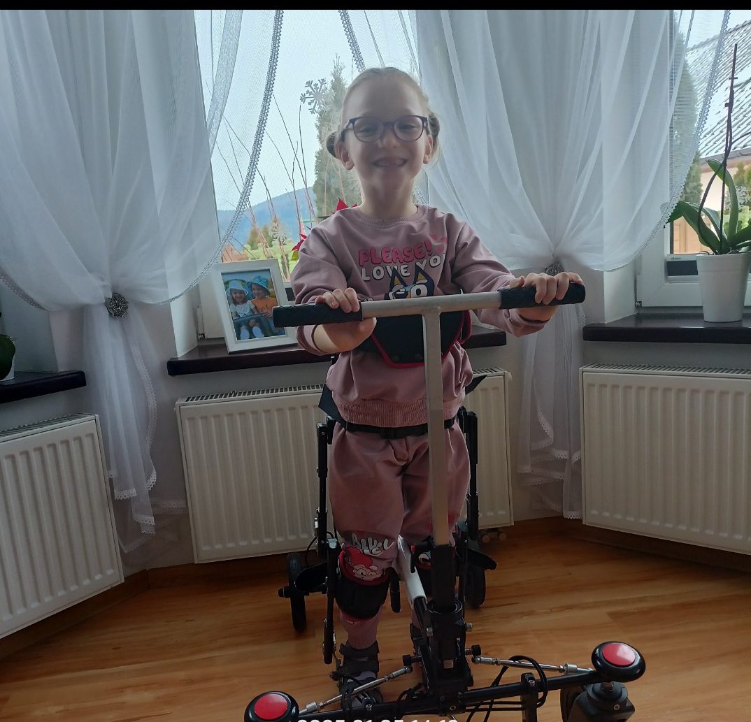 Kasieńka dziś ma 7 lat i nie chodzi samodzielnie, lecz każdego dnia ciężko walczy o swoją sprawność.