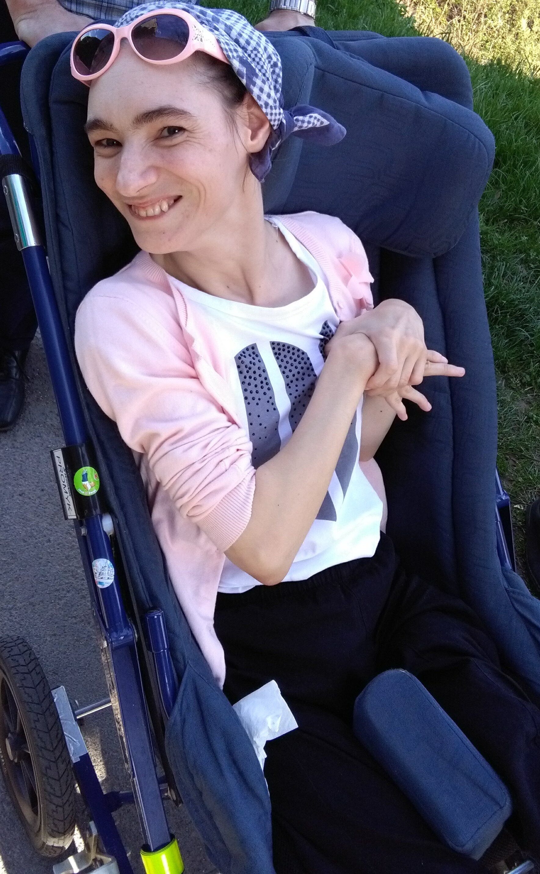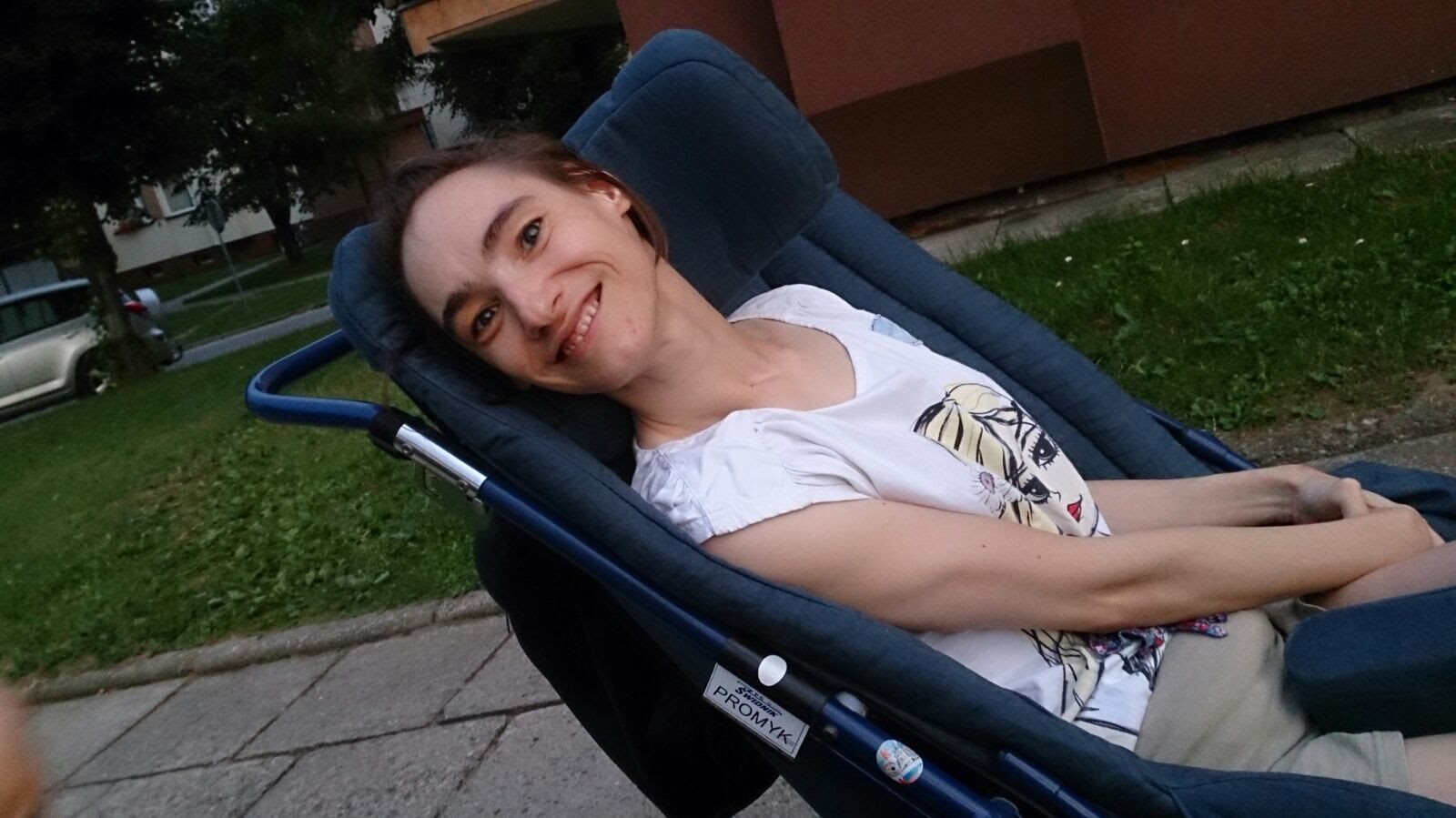 Aktualnie Kingusia uczęszcza na warsztaty terapii zajęciowej w Dobczycach. Niestety mieszkanie na 2. piętrze w bloku wiąże się z koniecznością znoszenia jej i wynoszenia codziennie po schodach. Jest to bardzo obciążające. Bardzo trudno jest nam znaleźć pomocnika, który by pomagał w transportowaniu Kingi z i do mieszkania. A jest to bardzo pilna potrzeba, ponieważ rodzice są w wieku emerytalnym, rodzeństwo pracuje, to wszystko trudno pogodzić z chęcią utrzymywania siostry w aktywności z innymi ludźmi na warsztatach.
