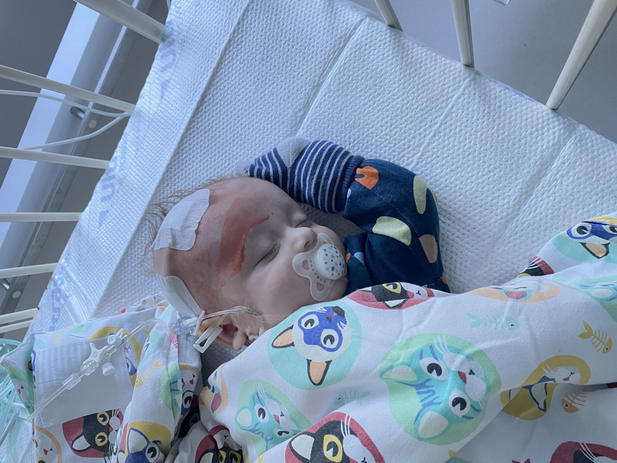 Po dotarciu ratowników i przewiezieniu nas na SOR lekarze robili co mogli, tomograf wykazał krwawienie w mózgu – prawdopodobnie zmiany oraz malformacje naczyniowe, świat nam się zawalił. Ksawery został przetransportowany wojskowym śmigłowcem do szpitala w Szczecinie. 11 dni spędził na oddziale intensywnej terapii dla dzieci. Diagnoza – udar lewej półkuli mózgu z rozległym krwawieniem podpajęczynówkowym (podejrzenie tętniaka 4,5 mm). Po licznych konsultacjach i badaniach zapadła decyzja o wybudzeniu Ksawerego ze śpiączki i jego rozintubowaniu. Udar wraz z krwawieniem przyczyniły się do niedowładu prawej strony oraz uszkodzenia lewej półkuli mózgu, wszystko to, czego Ksawery nauczył się przez 11 tygodni życia, poszło w niepamięć. Podczas dalszej diagnozy na oddziale neurologii dziecięcej płyn mózgowo-rdzeniowy przestał się wchłaniać tak jak powinien i zaczęło narastać wodogłowie. Została wówczas podjęta decyzja o implantacji zastawki komorowo-otrzewnowej. 8 lutego 2023 roku został przeprowadzony zabieg. Po ponad miesiącu spędzonym w murach szpitala pod okiem wielu lekarzy i przeprowadzeniu mnóstwa badań Ksawery wrócił do domku.