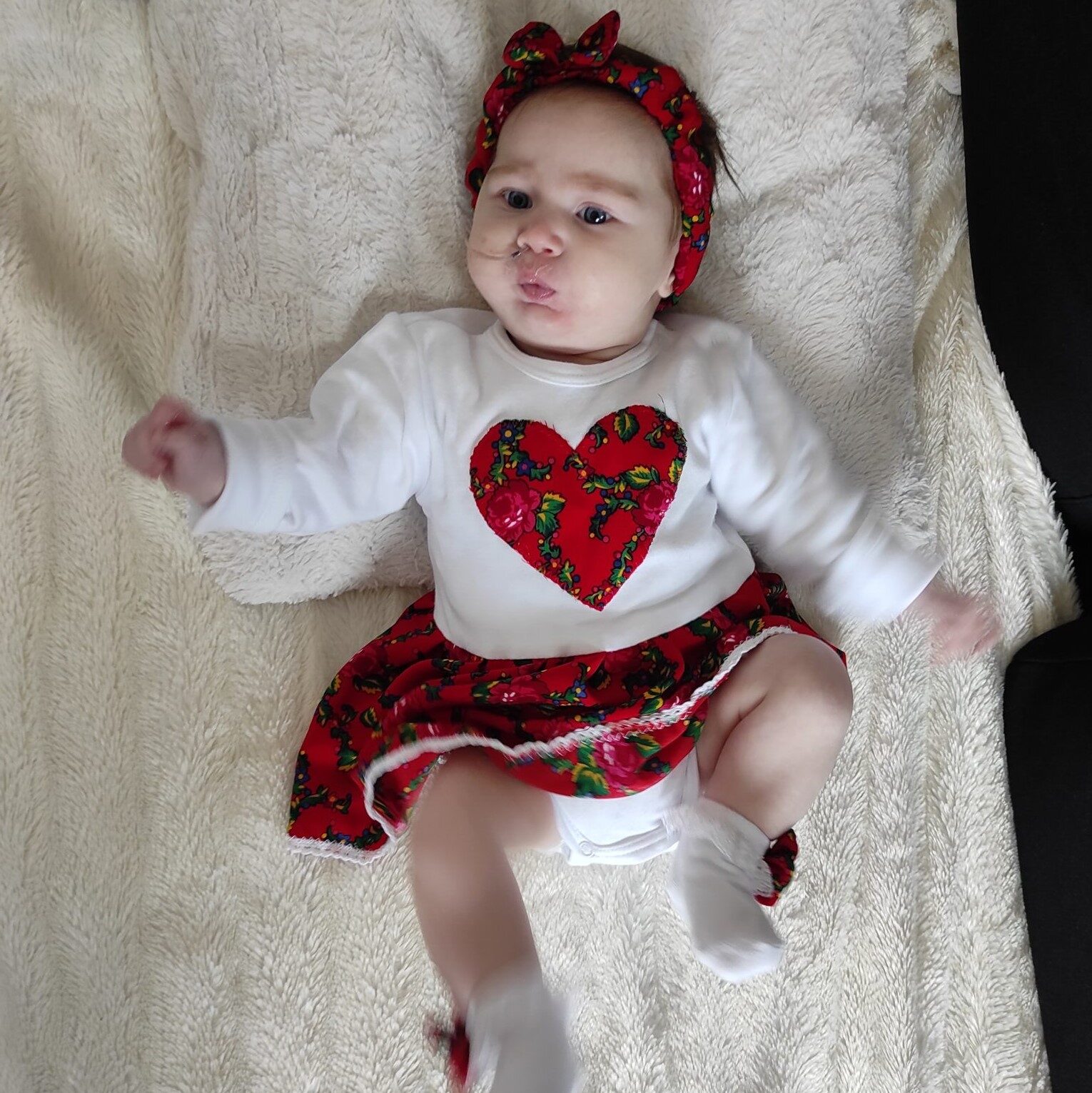 Laura przyszła na świat w listopadzie 2021 roku. Po porodzie u naszej córeczki rozszczep podniebienia miękkiego oraz sekwencję Pierre Robina. Jest to zespół wad wrodzonych twarzoczaszki charakteryzujący się niedorozwojem żuchwy, cofnięciem brody i zapadaniem się języka ku tyłowi. W związku z tym Laurce już w drugiej dobie życie założono sondę. Wykonane w szpitalu badanie słuchu także wykazało pewne nieprawidłowości.