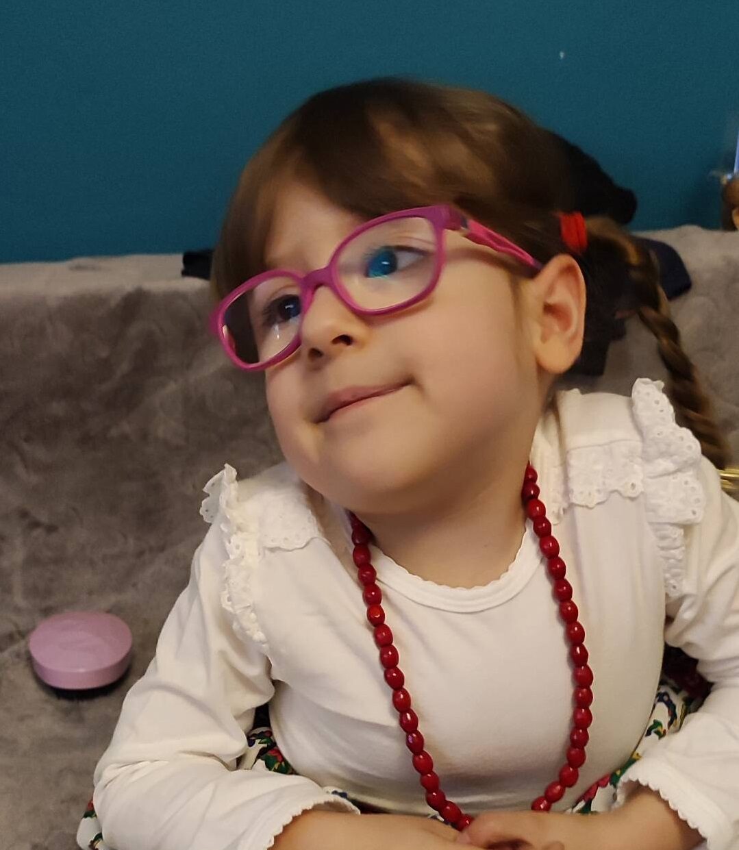 Cześć, jestem Laura i mam 7 lat. Urodziłam się z rozszczepem kręgosłupa, czego konsekwencją są wodogłowie oraz brak czucia w nóżkach. Mimo to staram się być aktywna i radosna, a teraz uczęszczam do pierwszej klasy szkoły podstawowej. Poruszam się na wózku inwalidzkim i codziennie podejmuję walkę o większą samodzielność.
