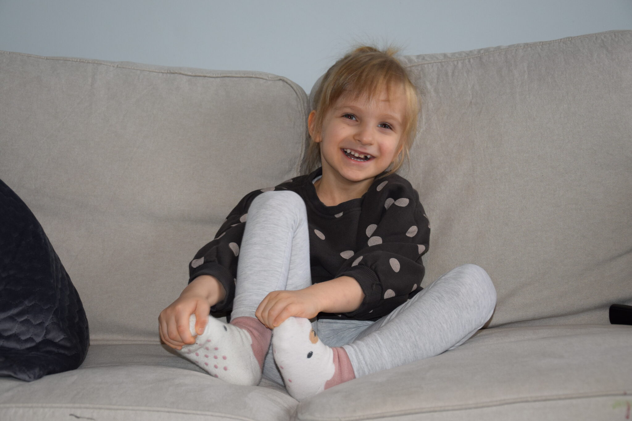 W wyniku zapalenia mózgu nasza córeczka przestała chodzić i mówić. Musiała się tego wszystkiego uczyć ponownie. Wystąpiła u niej również silna pląsawica. Do dnia dzisiejszego pozostał Lili niedowład, który doprowadził do początków skoliozy. Ataksja rdzeniowo-móżdżkowa, labilność emocjonalna i wada wymowy.