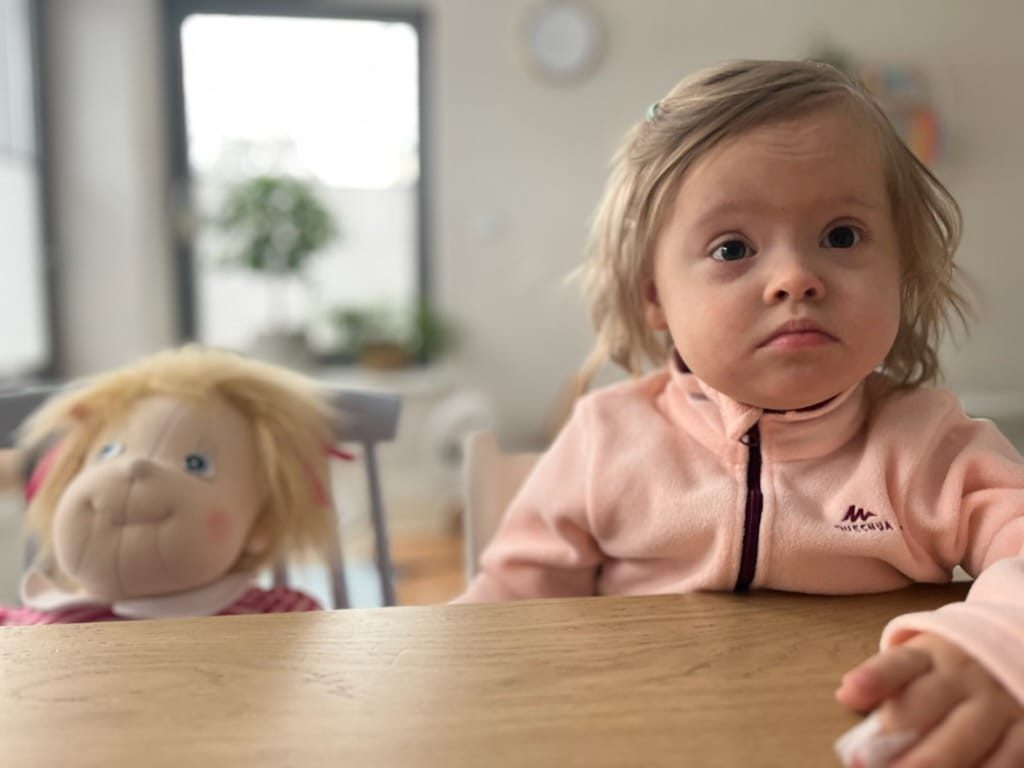 Nasza córeczka Maja urodziła się w 2020 roku z wadą genetyczną – trisomią 21 chromosomu, zwaną zespołem Downa oraz wadą serca – ubytkiem międzyprzedsionkowym. Do tej pory borykała się z wieloma problemami zdrowotnymi, z których wychodziła zwycięsko, ale najgorsze nadeszło 22 listopada 2021 – stwierdzona ostra białaczka limfoblastyczna z zajętym ośrodkowym układem nerwowym.