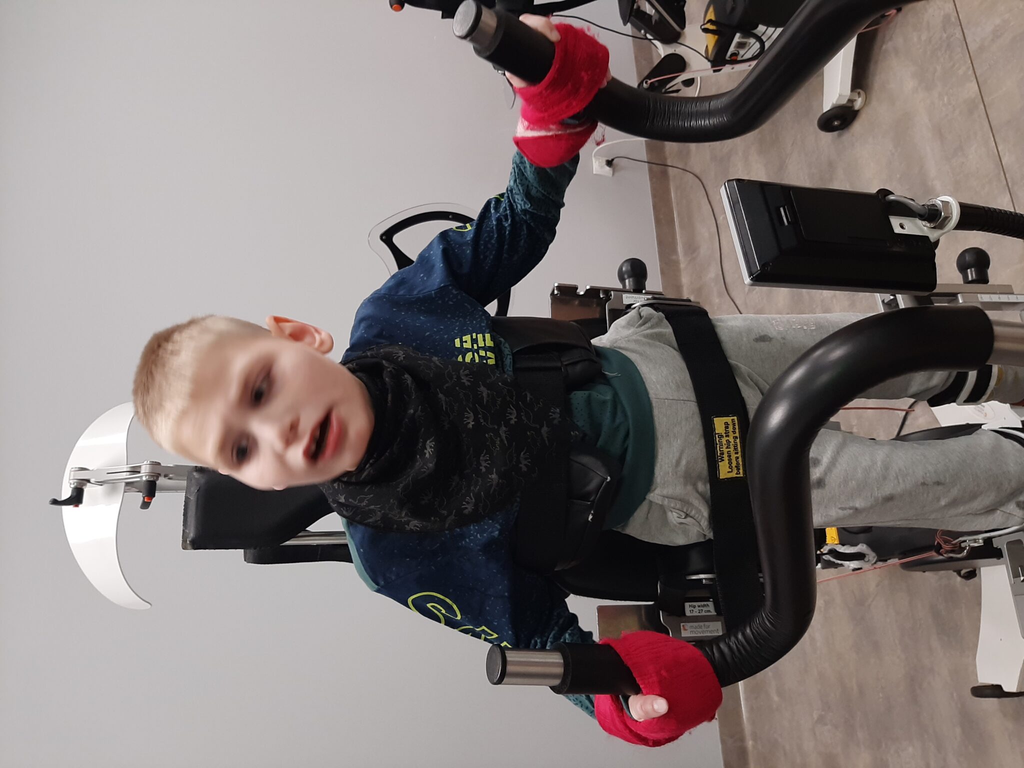 Syn od 15 miesiąca życia jest intensywnie rehabilitowany i terapeutyzowany, co dwa miesiące, o ile pozwoli nam na to aktualna sytuacja finansowa, korzysta także z turnusów organizowanych w ośrodkach rehabilitacyjnych. Stan Maksia wymaga także, by korzystał on z różnego rodzaju sprzętu rehabilitacyjnego jak np. wózek inwalidzki, który w miarę wzrostu Maksia trzeba wymieniać.