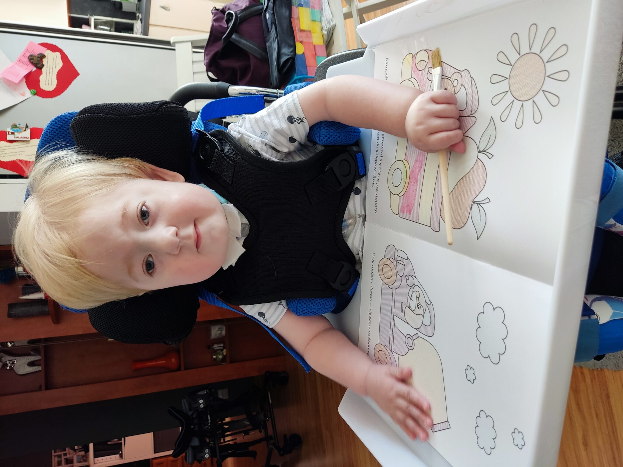 Marcelek ma 5 godzin w tygodniu prywatnej rehabilitacji, jeździmy na turnusy rehabilitacyjne do Warszawy, zakupiliśmy dla niego specjalistyczny fotelik samochodowy, wózek, siedzisko i pionizator, zaopatrzyliśmy Marcelka w ortezy, SPIO oraz STEP TO. Aktualnie można powiedzieć, że stale kursujemy między Tarnowem, Krakowem i Warszawą, ale widząc efekty tej codziennej ciężkiej i żmudnej pracy, wiemy, że warto. Aktywizujemy go w każdy możliwy sposób, aby rozwijał się jak najbardziej globalnie. A to wszystko dzięki waszej pomocy.