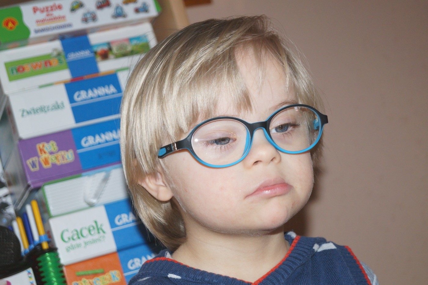 Witam. Mam na imię Marcel. Urodziłem się w 2014 r. Po porodzie zdiagnozowano u mnie wadę genetyczną – Trisomię 21. Przy 21. parze chromosomów jest dodatkowy trzeci chromosom, który przeszkadza mi się prawidłowo rozwijać.
