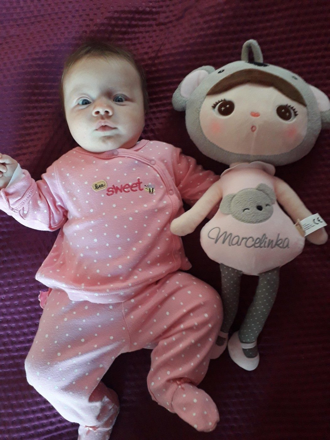 Marcelina przyszła na świat 23 października 2019 roku w atmosferze strachu o jej życie i zdrowie. Krótko przed narodzinami rozpoznano prenatalnie bardzo rozległe krwawienie śródmózgowe w lewej półkuli i liczne krwawienia w prawej półkuli mózgu. W wyniku masywnego krwawienia do OUN nasza dziewczynka boryka się z niedowładem połowiczym prawostronnym ciała, niedosłuchem prawego ucha, wadą wzroku (zez neurologiczny), afazją i opóźnieniem rozwoju psycho-ruchowego.