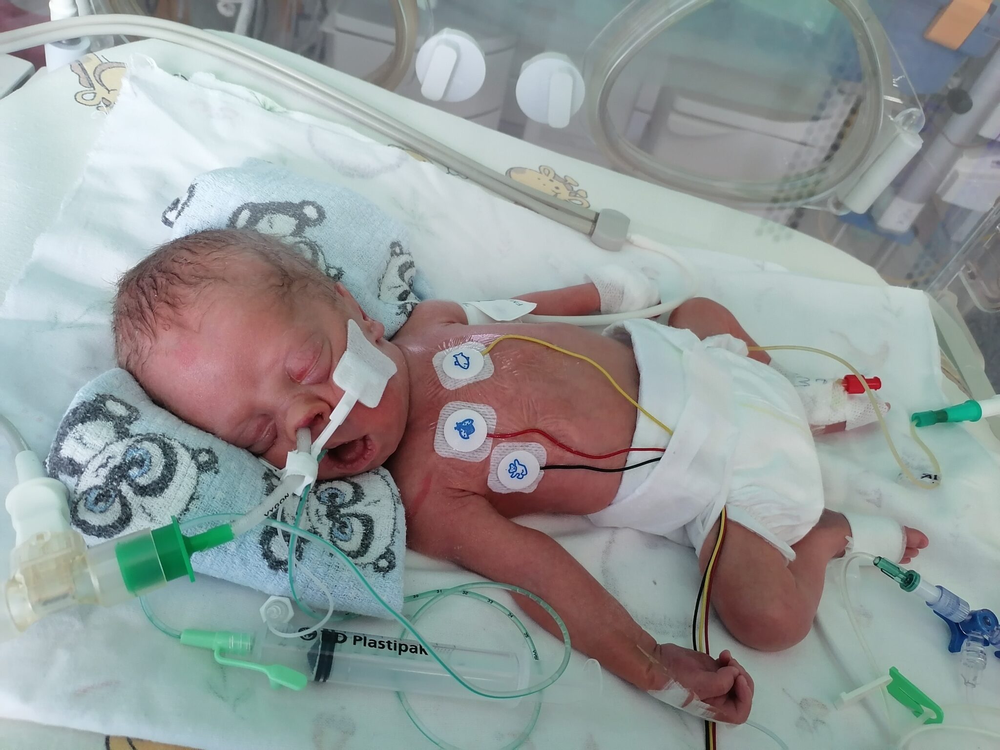 Antoś to dzielny wcześniak, który od pierwszych chwil swojego życia wykazał ogromną wolę życia. Walka o jego życie rozpoczęła się już na początku ciąży. W styczniu zeszłego roku, będąc w 12. tygodniu ciąży, dowiedziałam się, że mam raka złośliwego szyjki macicy. Przerażenie, niedowierzanie i wielki strach towarzyszyły mi każdego dnia. Chciałam być zdrowa, ale także z całych sił pragnęłam, aby Antoś mógł przyjść na świat. Po długim pobycie w szpitalu, wielu badaniach i konsultacjach, dostałam plan leczenia. Razem z Antosiem w brzuchu przeszłam dwa cykle chemioterapii. Zakładaliśmy optymistycznie, że ciąża zakończy się w 34. tygodniu, ale los chciał inaczej. W wyniku komplikacji Antoś urodził się w 29. tygodniu ciąży. Spędził 95 dni w szpitalu, z czego ponad 80 na OIOM-ie. Ze szpitala został wypisany pod opieką hospicjum domowego. Przeszedł wiele: kilkukrotne zatrzymania akcji serca, niewydolność oddechową, niewydolność krążenia, niewydolność nerek, odmę opłucnową, dokomorowy krwotok, osteopenię wcześniaków, zapalenie płuc, niedotlenienie, kwasicę metaboliczną, kilkukrotne przetaczanie krwi, obustronne poszerzenie układu kielichowo-miedniczkowego, drgawki, opóźnienie rozwoju psychoruchowego. Antoś jest pod stałą opieką wielu poradni specjalistycznych, fizjoterapeuty i rehabilitanta. Nie wiemy, jak będzie wyglądała przyszłość Antosia, ale jesteśmy świadomi, że tylko intensywna rehabilitacja i wielospecjalistyczna opieka lekarska mogą ułatwić mu w miarę normalny rozwój.