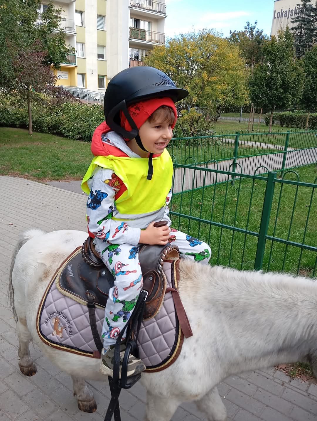 Teraz chodzi do przedszkola i ma tam terapię SI, TUS, dogoterapia. Zbieramy na terapię w przedszkolu i hipoterapie, bo synek bardzo lubi konie.