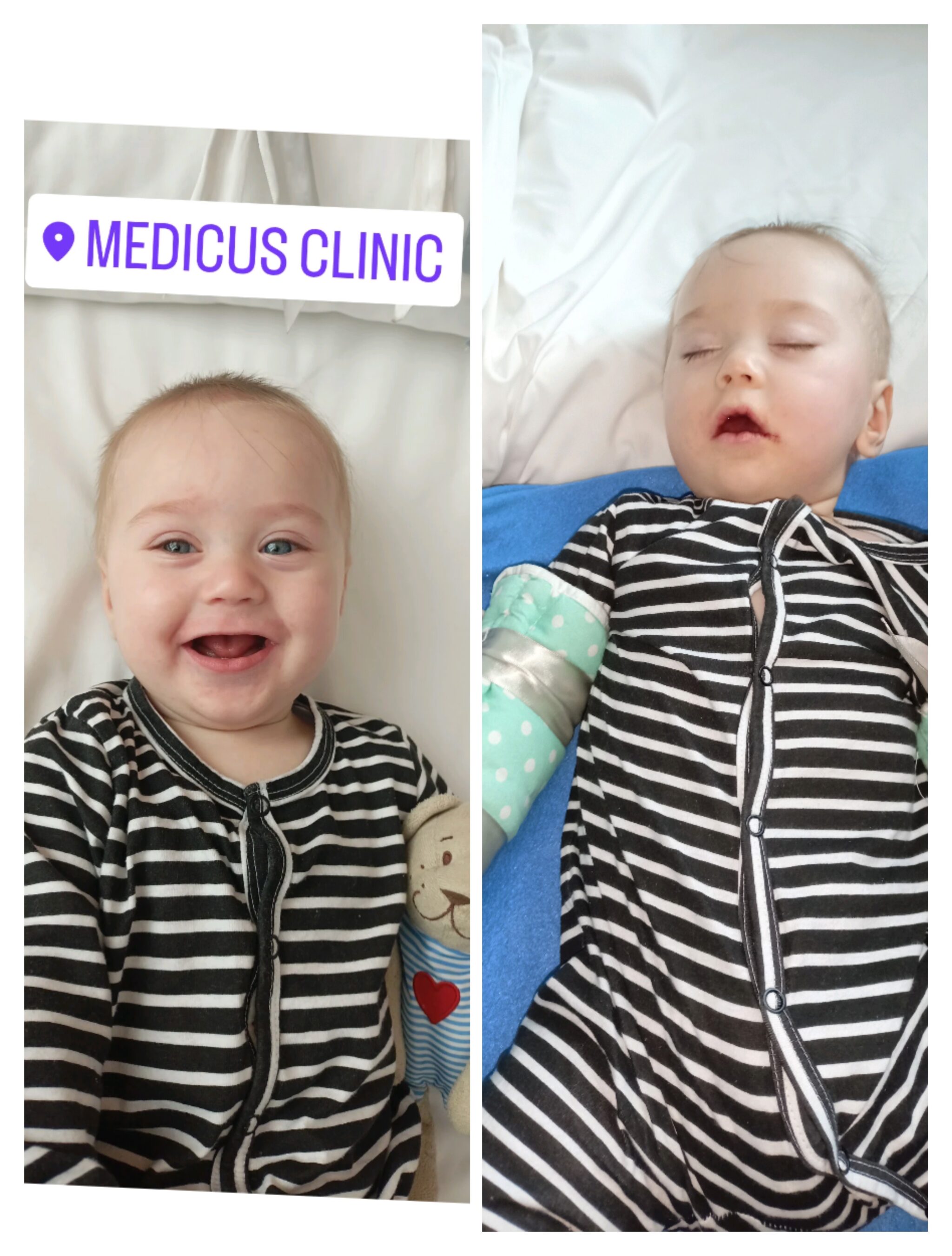 Mateusz przyszedł na świat w październiku 2021 roku. U syna od razu stwierdzono: obniżone napięcie mięśniowe wymagające natychmiastowej rehabilitacji, rozszczep podniebienia, który poddaliśmy plastyce w 7 miesiącu życia dziecka, pilną potrzebę podcięcia wędzidełka, które miało miejsce w pierwszej dobie życia. Mateusz urodził się również z dwoma węzłami prawdziwymi na pępowinie, gdyby w dniu narodzin lekarze podjęli inne decyzje, syna nie byłoby dziś z nami…