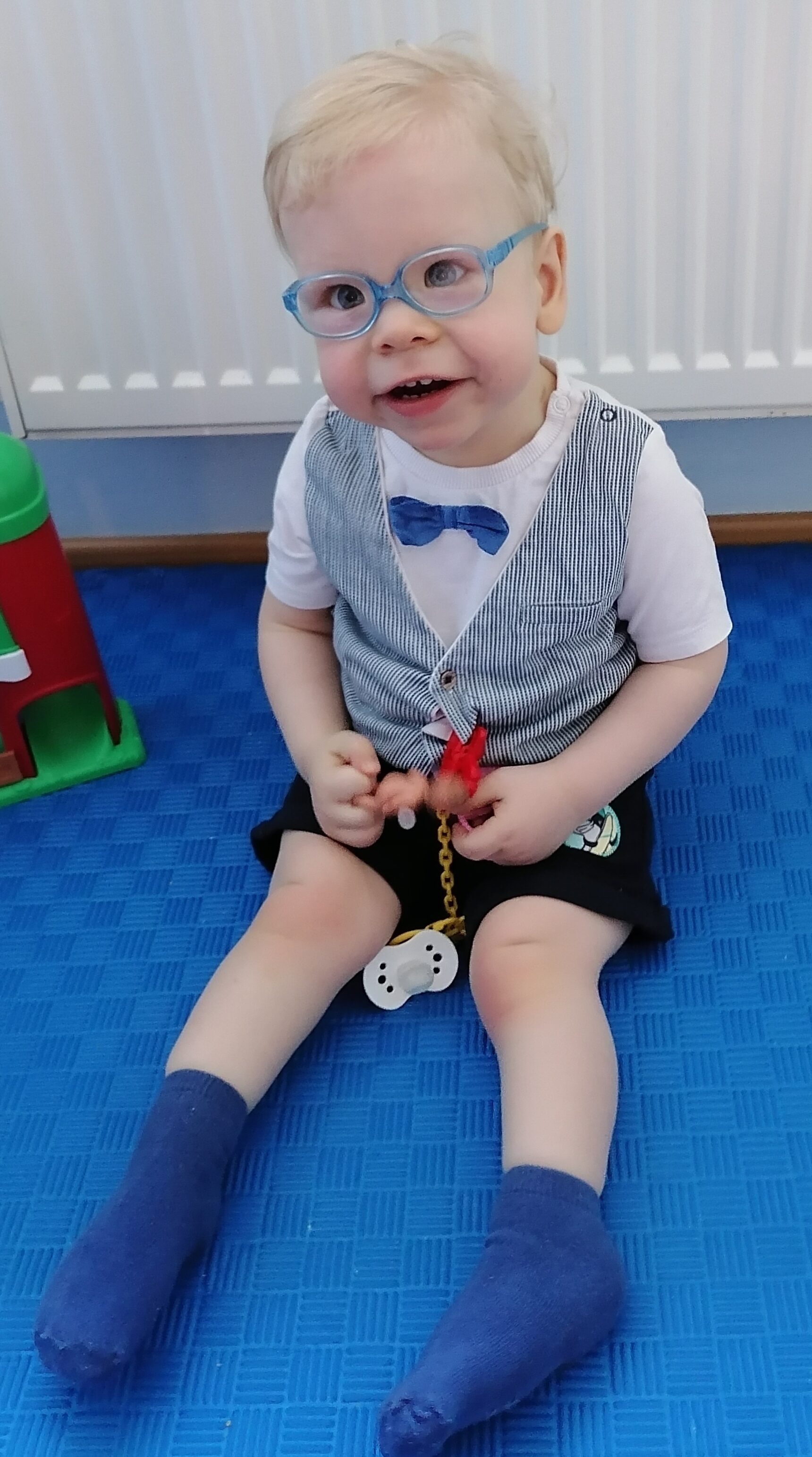 Dzięki systematycznej pracy z terapeutami oraz ogromnej determinacji rodziców, krok po kroku robię postępy w rozwoju. Obecnie intensywnie walczę o rozwój mowy.