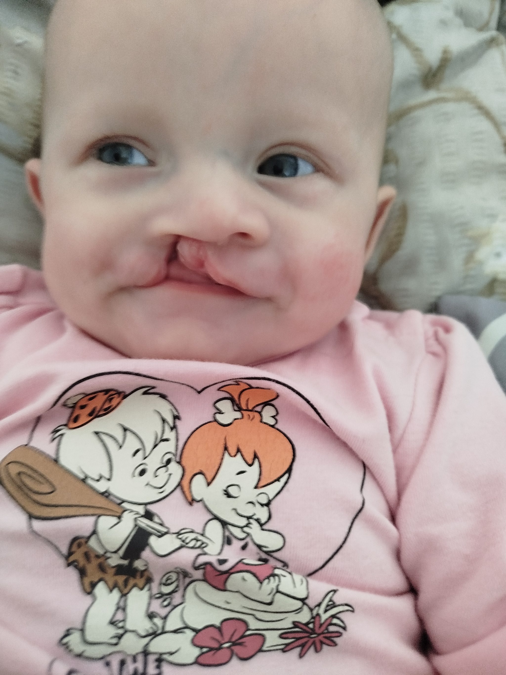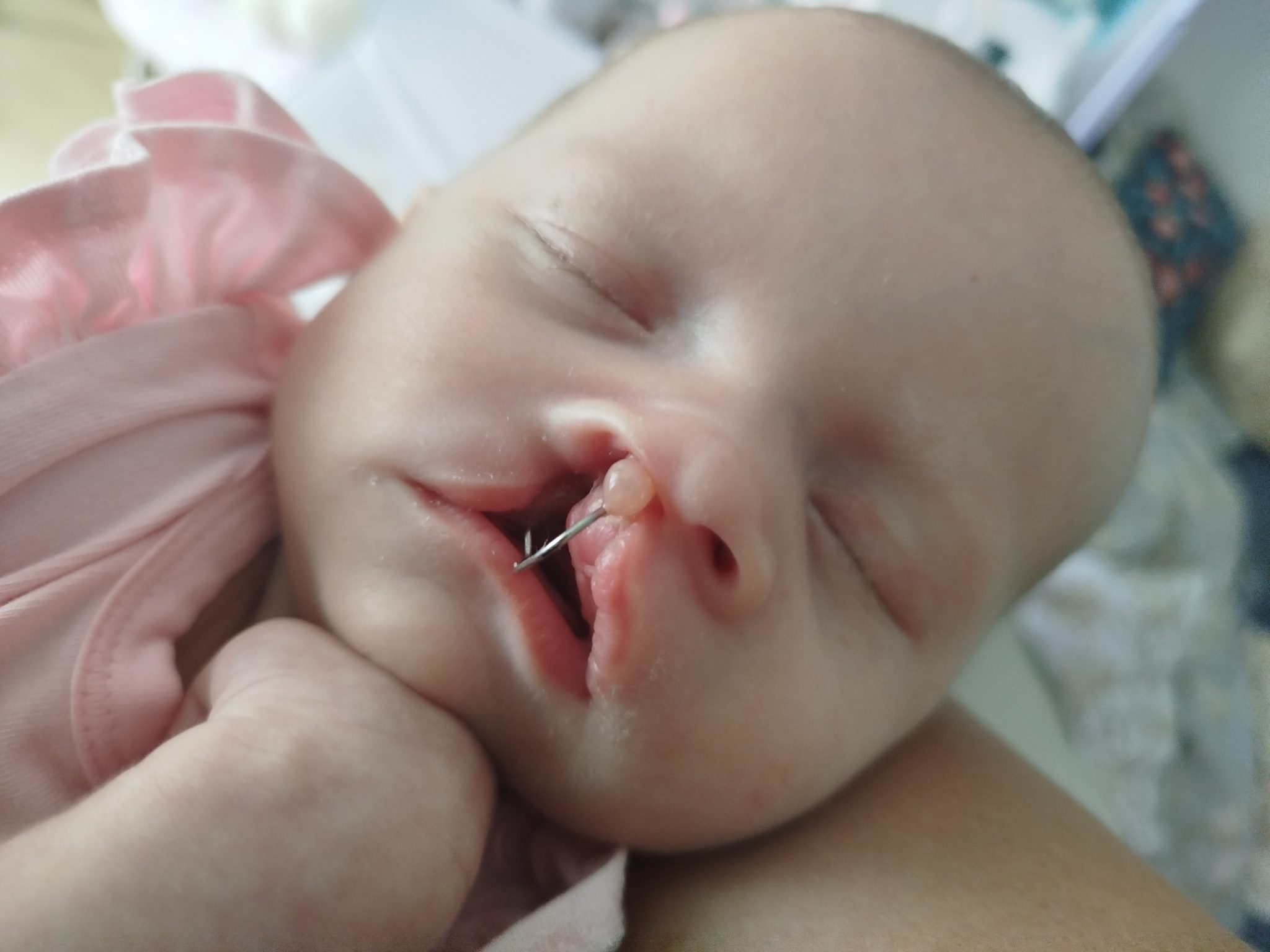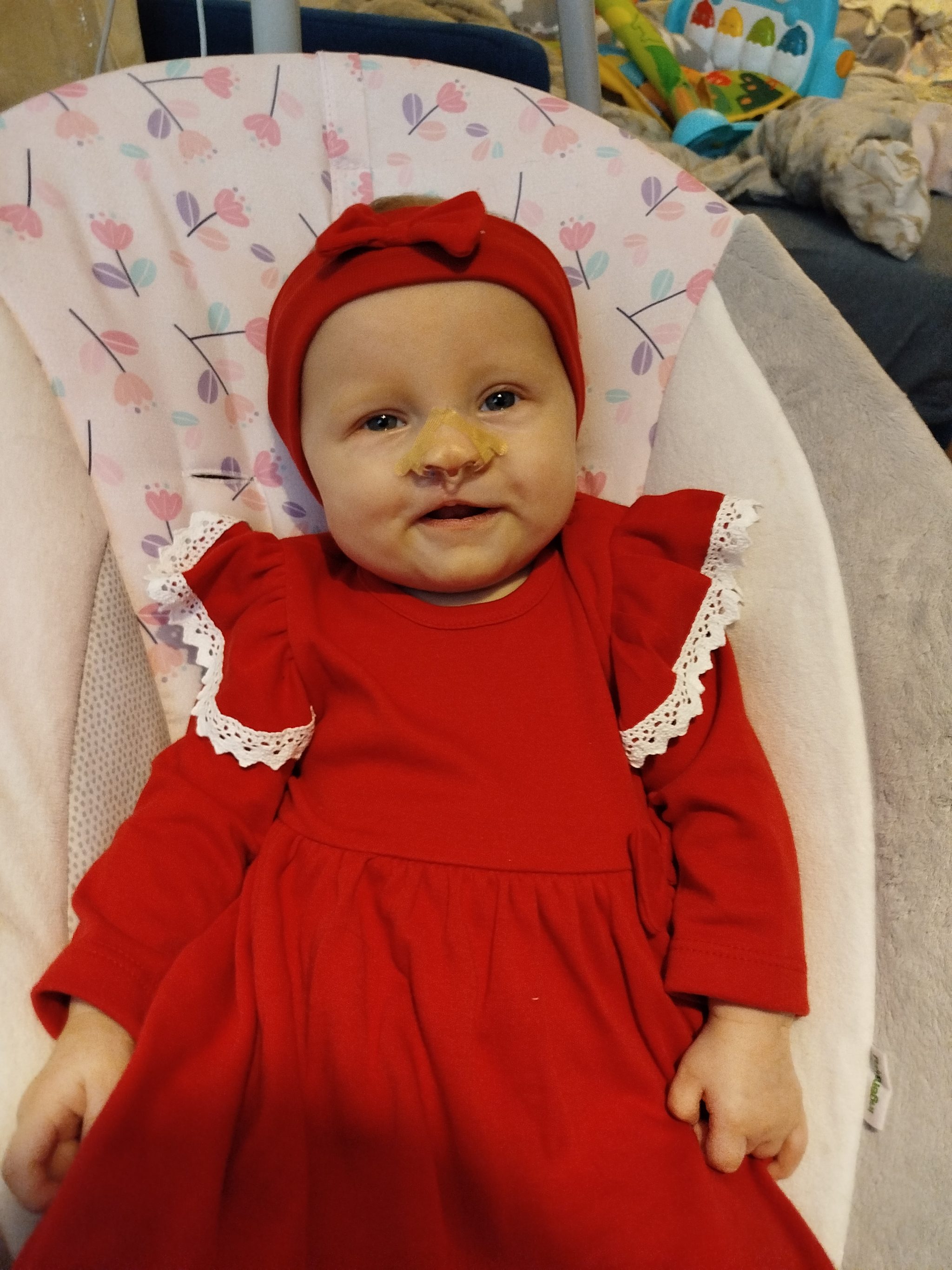 W sierpniu córka miała założoną płytkę podniebienna, którą nosiła do 25 listopada. Codzienne klejenie płytki oraz plastrowanie wargi, które miało na celu zmniejszenie rozszczepu oraz przygotowanie do pierwszego etapu operacji było dla nas nie lada wyzwaniem. Matylda jest pod opieką audiologa ponieważ trzykrotne badania słuchu wyszły nieprawidłowe. Jest również pod stałą opieką neonatologa, chirurga, neurologa, ortodonty, neurologopedy oraz rehabilitanta/fizjoterapeuty. Od urodzenia córka ma problem z asymetrią ciała, napięciem mięśniowym, wolniej zdobywa nowe umiejętności, dlatego konieczne są stałe ćwiczenia oraz rehabilitacja. Matylda ma już za sobą pierwszy etap operacji, plastykę rozszczepu wargi i nosa. Drugi etap czeka nas w kwietniu – operacja podniebienia. Kolejne etapy, takie jak przeszczep kości do wyrostka zębodołowego mają odbyć się w późniejszych latach życia córeczki.