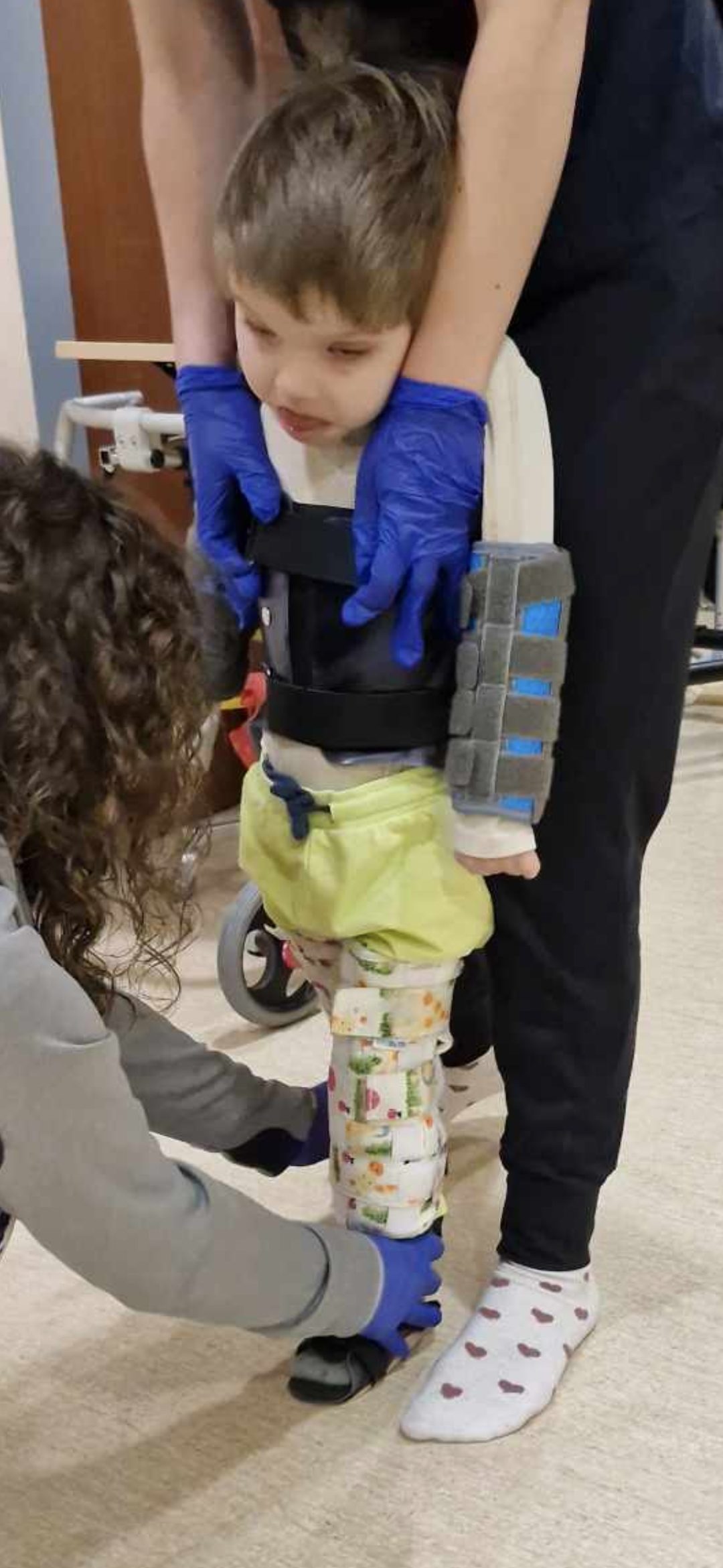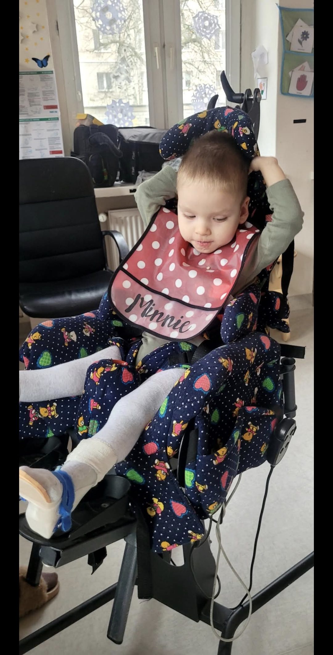 Synek wymaga stałej opieki, ponieważ nie widzi, samodzielnie nie siedzi oraz nie mówi. Staramy się pomóc mu w jego trudnej walce, jednak generuje to duże koszty.