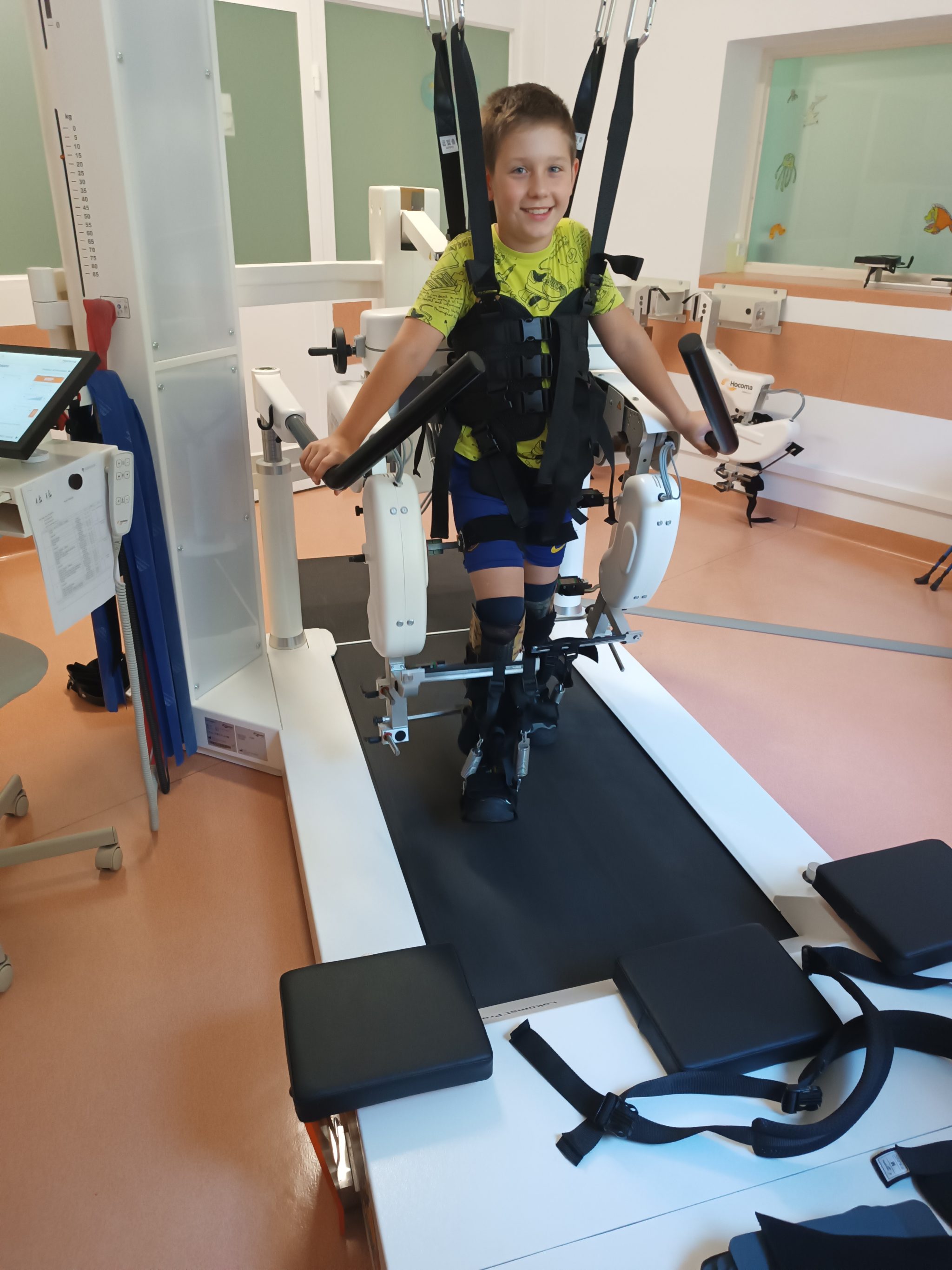 Dziękujemy za dofinansowanie zakupu nowego pionizatora z odwodzeniem dla Michała. Obecnie Michał pracuje nad poprawą jakości chodzenia z ochroną kolan. Do tego celu potrzebuje kosztownych specjalistycznych ortez z włókna węglowego oraz butów do nich. Muszą być one wymieniane zgodnie ze wzrostem stóp i kończyn dolnych.