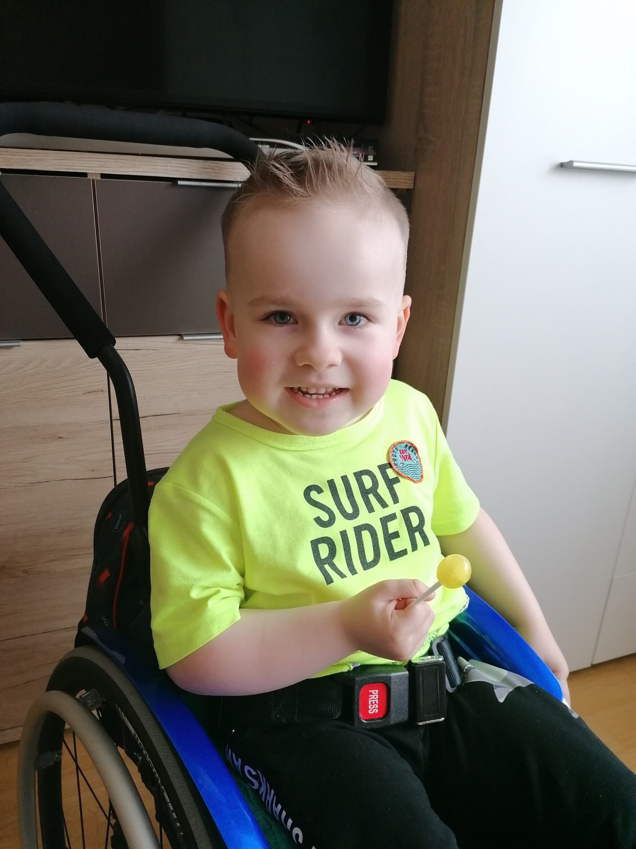 Nasz synek nigdy nie miał szansy postawić samodzielnie kroku. Od zawsze porusza się na wózku inwalidzkim. Z każdym miesiącem jego mięśnie słabną, a choroba postępuje nieubłaganie. Każdego dnia musi ćwiczyć, by usprawnić chore mięśnie, przeciwdziałać przykurczom oraz deformacjom kości. W codziennym funkcjonowaniu pomagają mu sprzęty ortopedyczne i rehabilitacyjne.