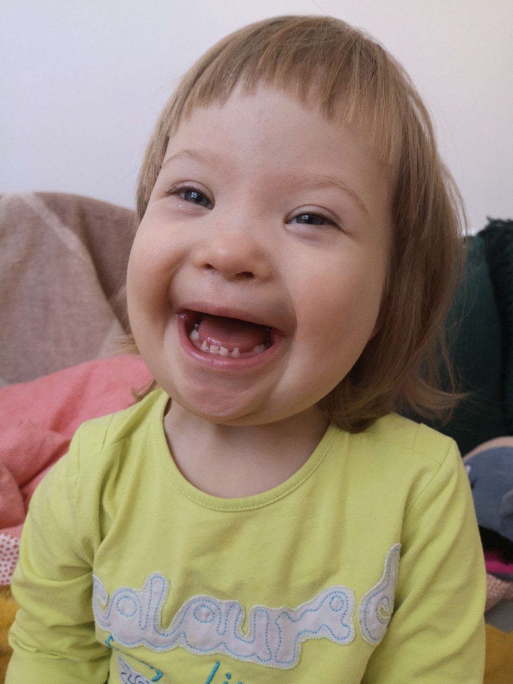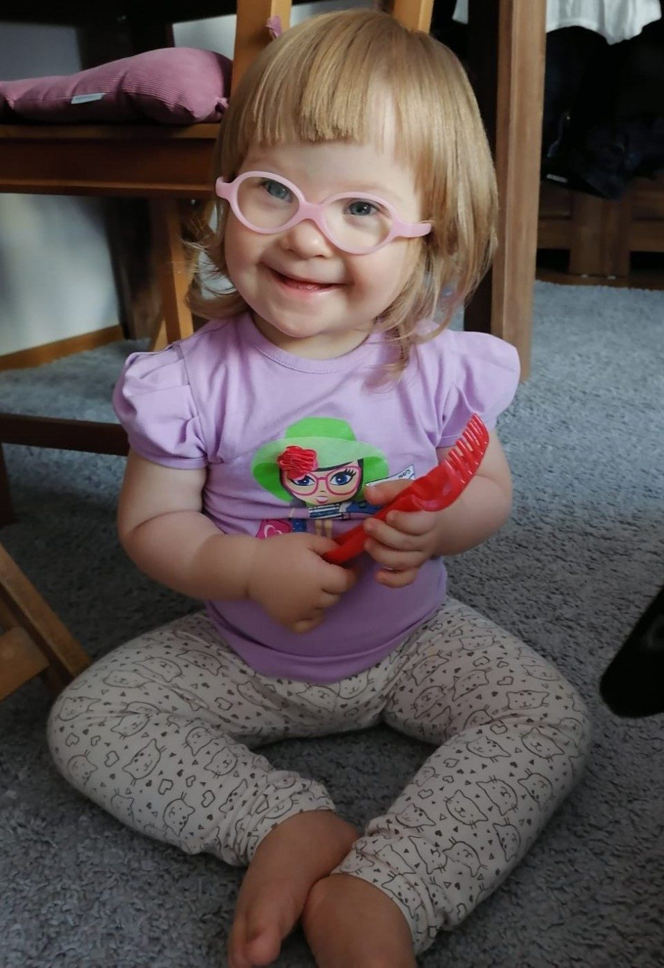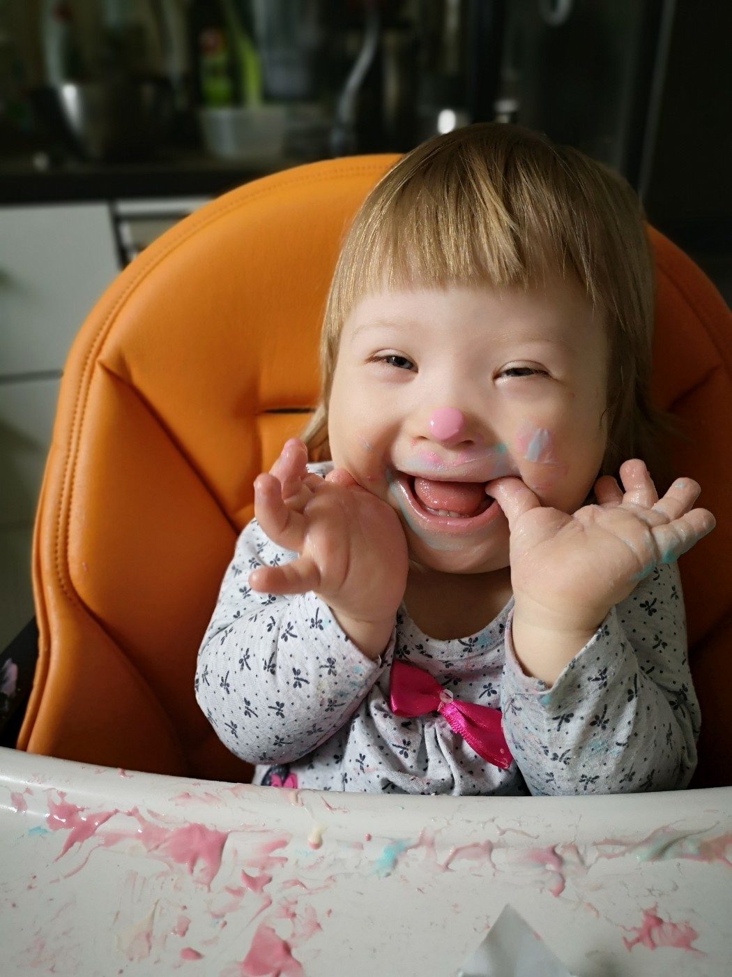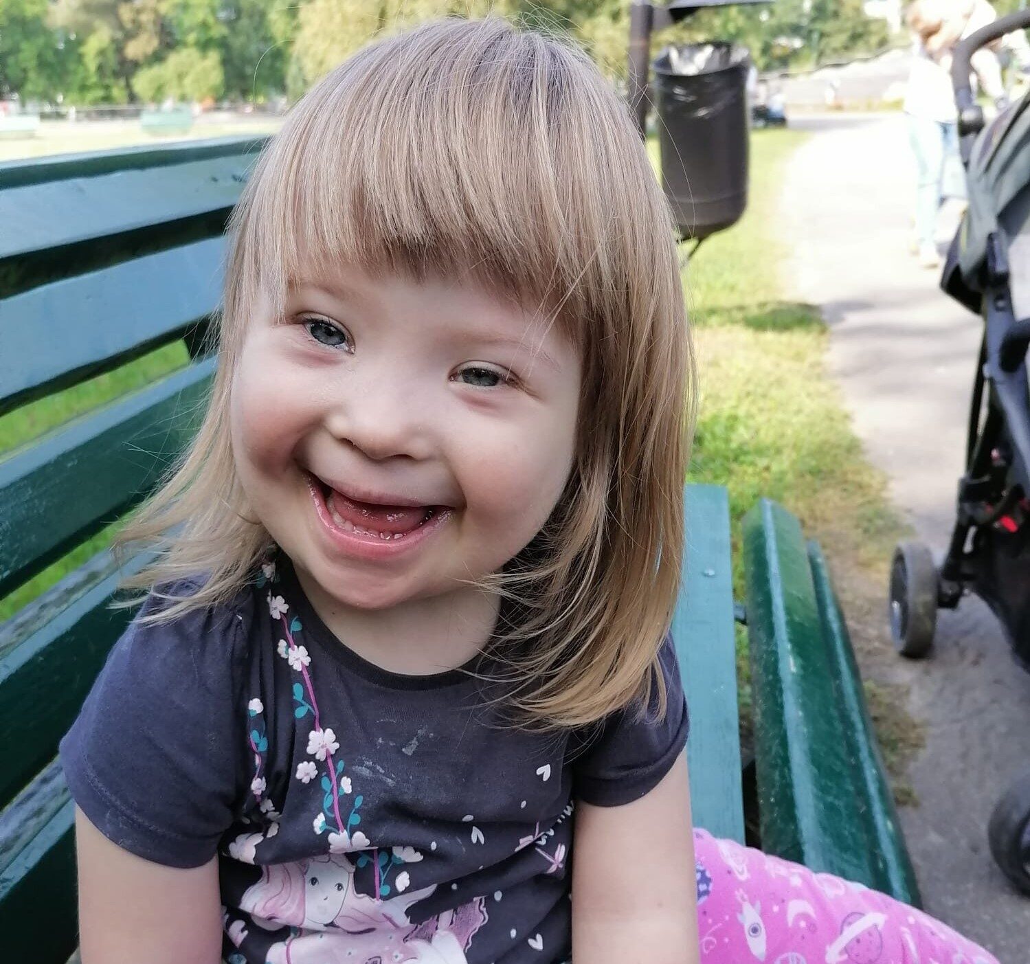 Ola jest pogodnym i radosnym dzieckiem. Uwielbia słuchać muzyki i tańczyć. Niestety urodziła się obarczona zespołem Downa, z którym związane jest wiele schorzeń. Największym z nich jest problem z mową. Pomimo ciągłej pracy terapeutów i naszej potrafi powiedzieć tylko kilka sylab, a dodatkowo słabe napięcie mięśniowe wymusza ciągłą rehabilitację.