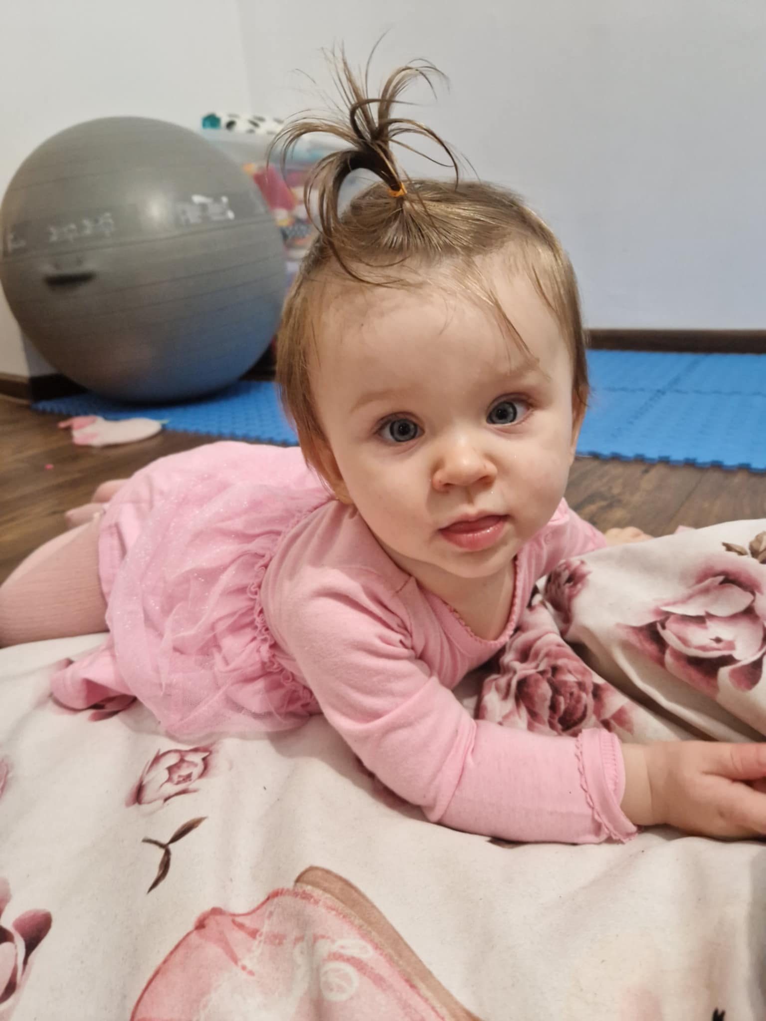 Olga urodziła się 16.03.2024 r. z węzłem prawdziwym na pępowinie. Początkowo nic nie wskazywało na problemy zdrowotne, ale z czasem zauważyliśmy, że nie rozwija się jak inne dzieci. Kiedy jej rówieśnicy zaczęli siadać czy raczkować, Olga wciąż leżała.