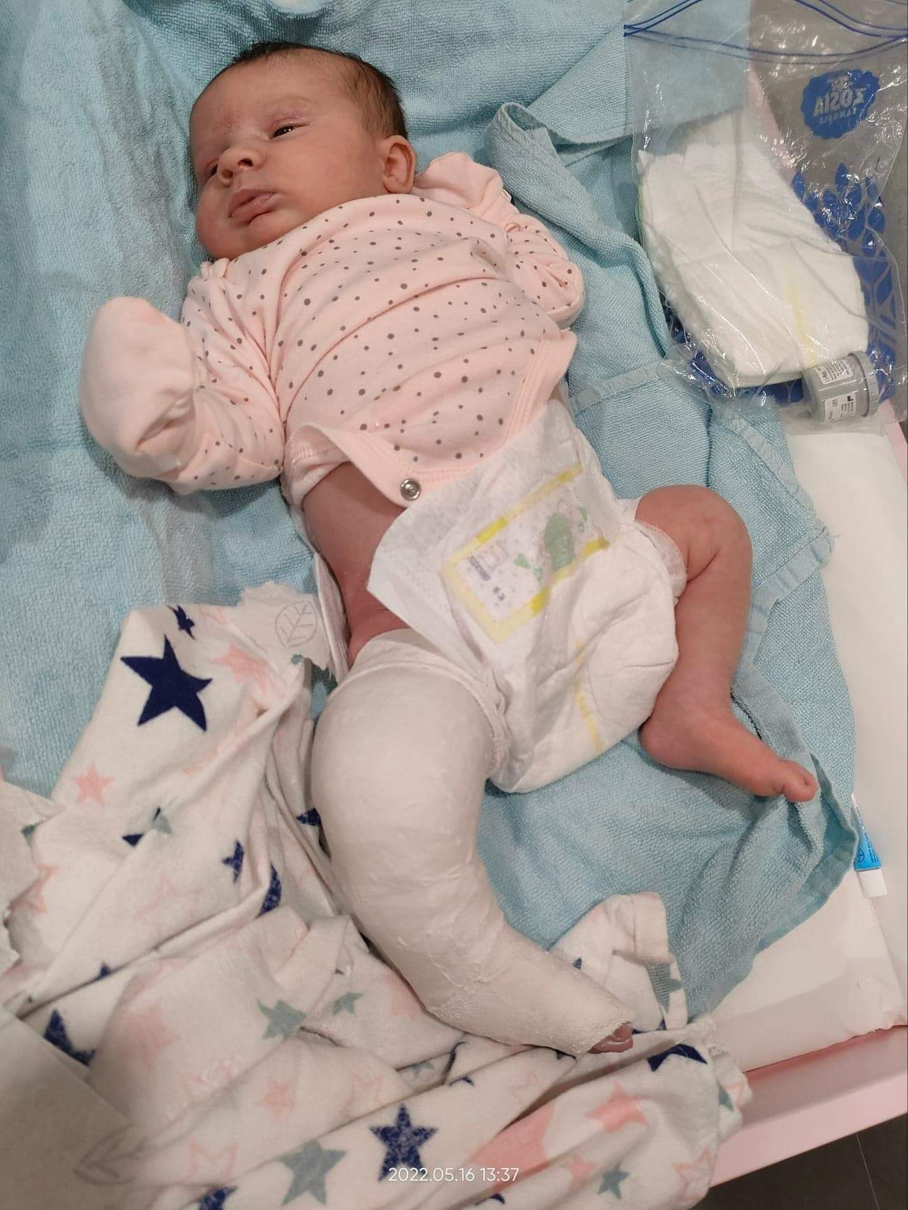 W pierwszym miesiącu życia rozpoczęliśmy leczenie metodą Ponsetiego w prywatnym ośrodku w Warszawie, zajmującym się tego typu schorzeniami. Co tydzień jeździliśmy na zakładanie gipsów, które pozwalały na ustawianie stopy w odpowiedniej pozycji.