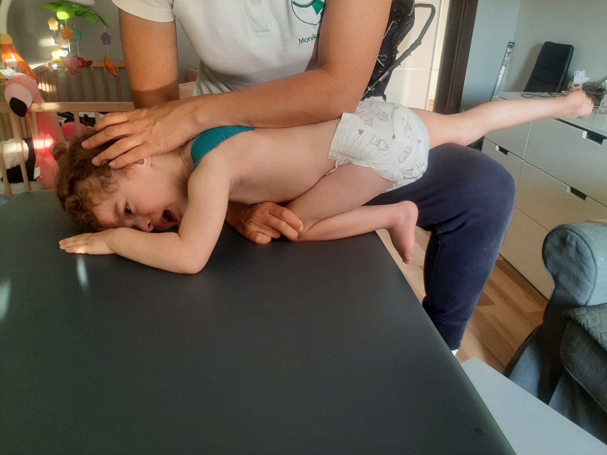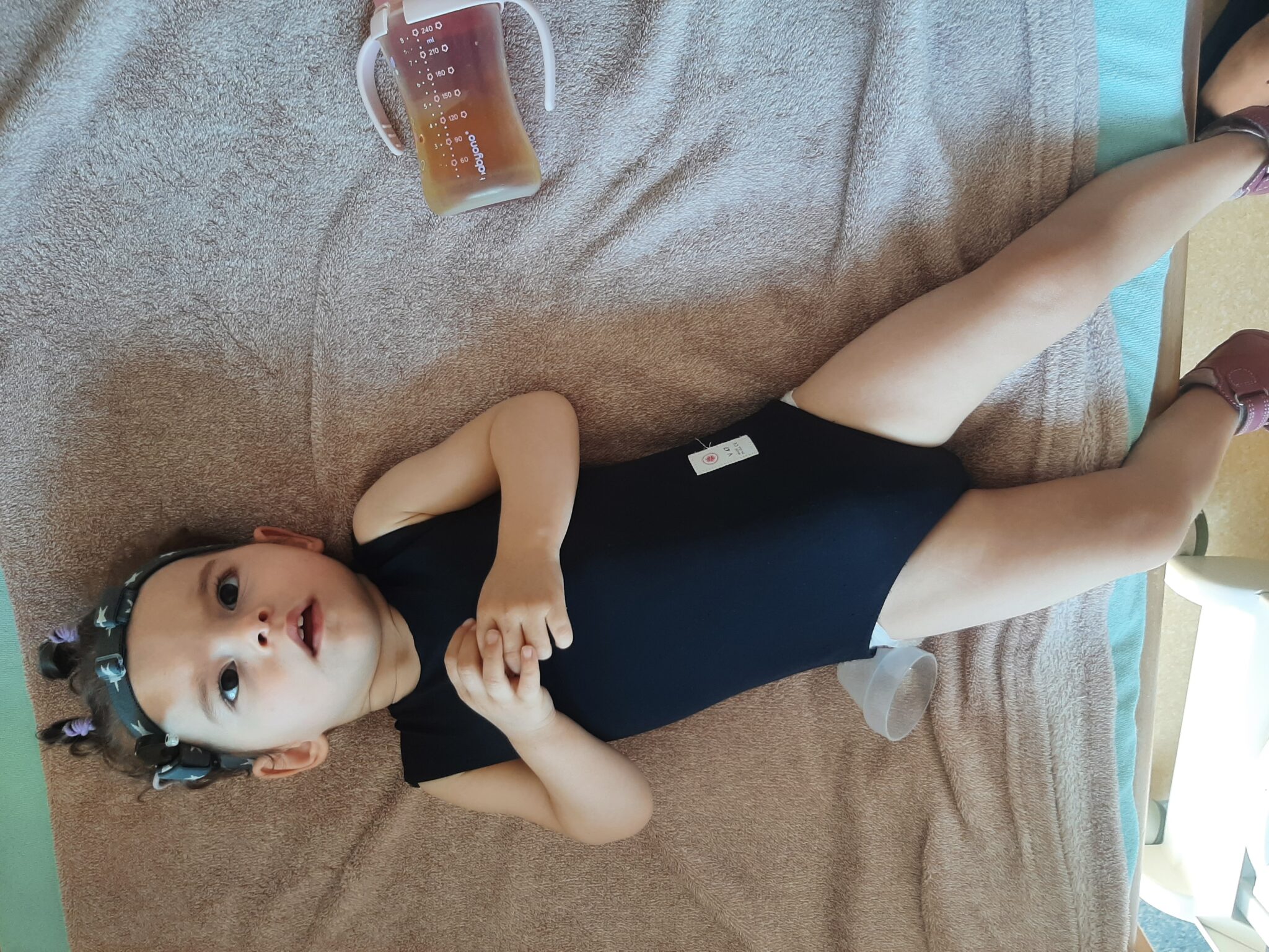 Dalsza i rozszerzona diagnostyka zakończyła się jednak szeregiem diagnoz – encefalopatia, zaburzenie ośrodkowego układu nerwowego (nieokreślone), zespół porażenny (nieokreślony), zaburzony rozwój psychomotoryczny oraz obustronny niedosłuch (w lewym uchu aparat słuchowy, a w prawym implant ślimakowy). Po konsultacji z neurologiem, pediatrą i fizjoterapeutą została nam zalecona natychmiastowa i stała rehabilitacja ruchowa Oliwki, terapia logopedyczna oraz psychologiczna.