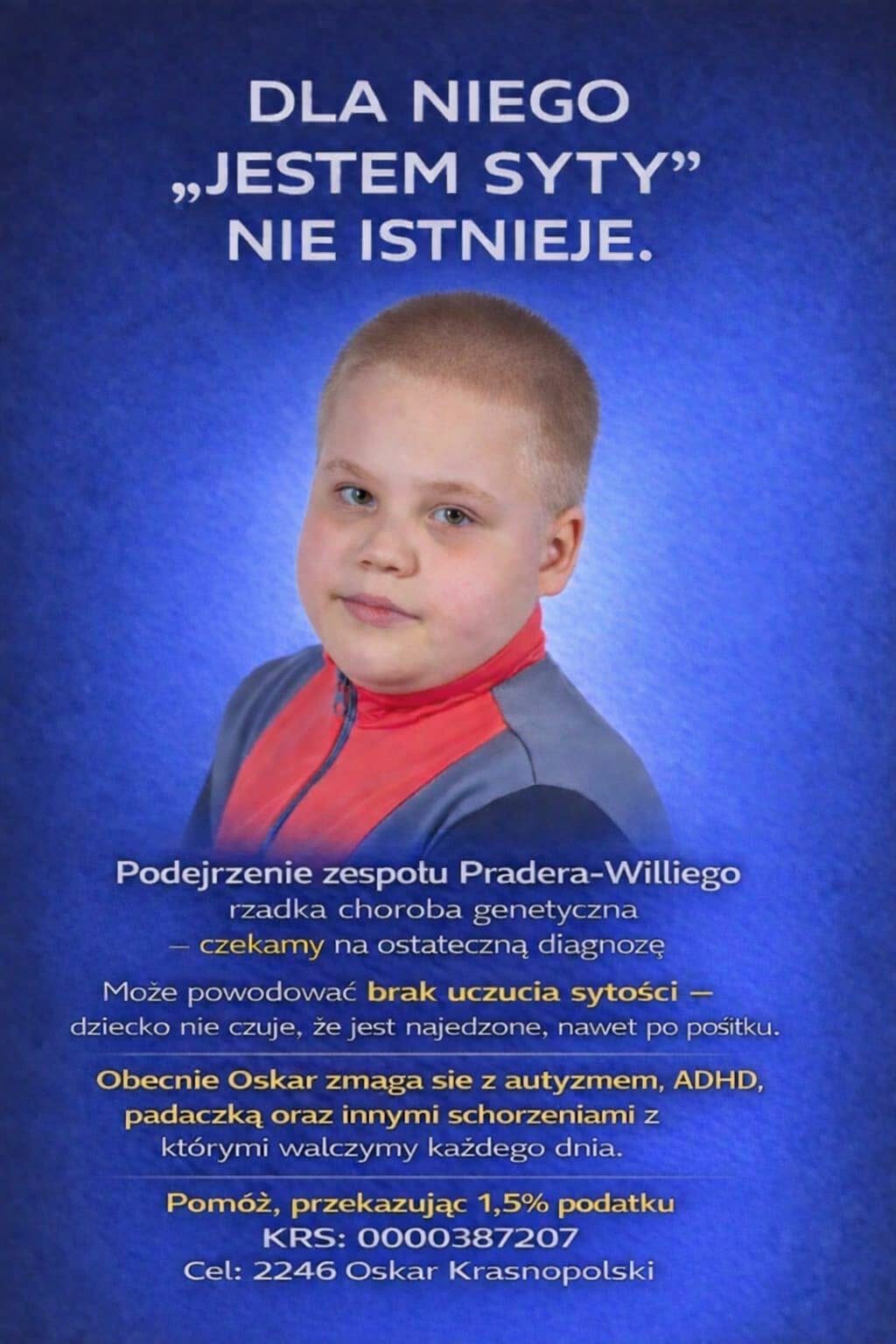 Obniżone napięcie mięśniowe, problemy z otyłością, padaczka, astma, zaburzenia neurorozwojowe, autyzm, ADHD oraz zmiany naczyniowe w mózgu sprawiają, że każdy dzień to ogromne wyzwanie – zarówno dla Oskara, jak i dla naszej rodziny.