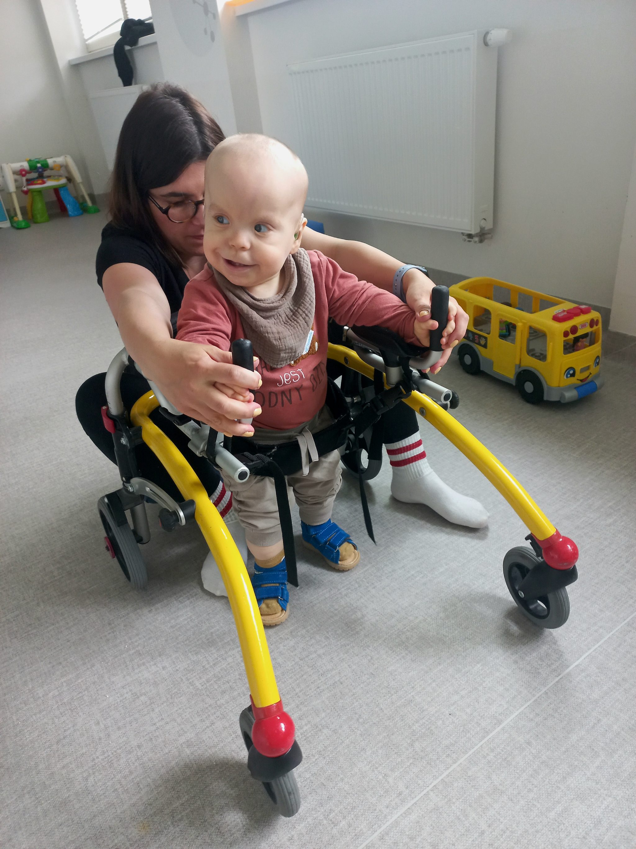 W październiku 2024 r. Oskar przeszedł z sukcesem podwójna operację serca. Kolejnymi zabiegami było wycięcie wędzideł bocznych policzkowych i drenaż uszu. Czekamy na operację rozszczepu podśluzówkowego podniebienia. Mamy problem z biodrami. Choroba niestety jest nieuleczalna, ale możemy walczyć o jak najlepsze dzieciństwo dla Oskara i pomoc w osiągnieciu jak najlepszych efektów rozwoju. Oskar nie chodzi i nie potrafi samodzielnie siadać. Między pobytami w szpitalach wyjeżdżamy na prywatne turnusy rehabilitacyjne. Widzimy bardzo duże postępy rozwojowe, dlatego chcielibyśmy wyjeżdżać jak najczęściej. Jesteśmy pod stała kontrolą kardiologa, neurologa, audiologa, okulisty, laryngologa, genetyka, endokrynologa, ortopedy, neurochirurga. Ciągłe wizyty u specjalistów łączą się z wysokimi kosztami przez dalekie dojazdy. Codziennie uczęszczamy na zajęcia z rehabilitacji oraz uczymy się poprawnie jeść z pomocą neurologopedy. Potrzeby Oskarka ciągle rosną.