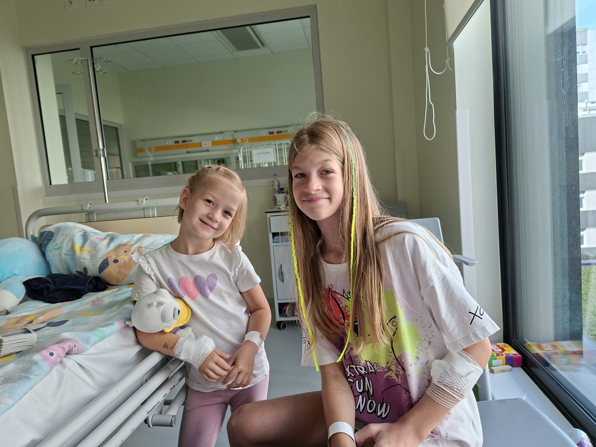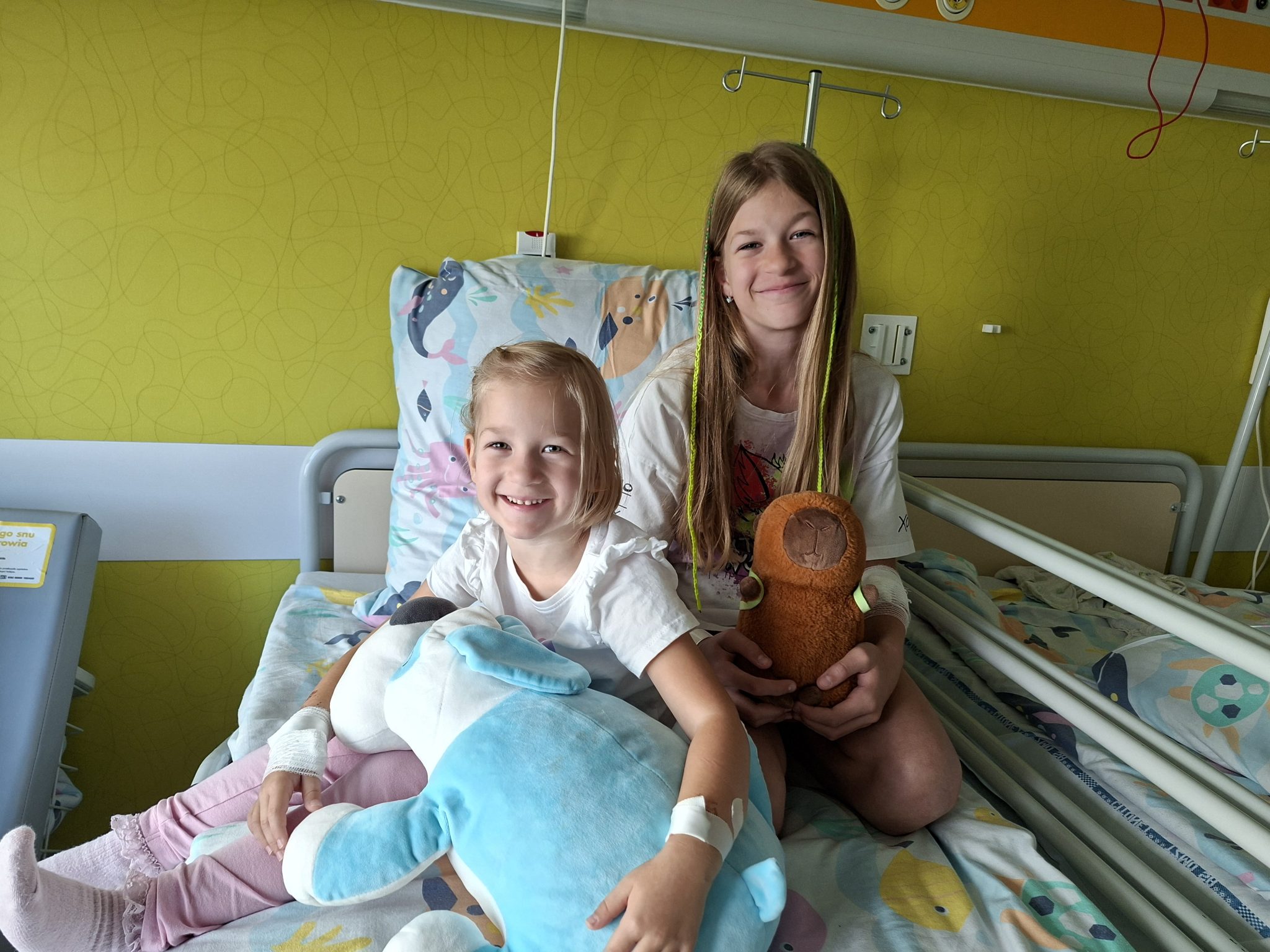 Obecnie zmagamy się z przewlekłymi infekcjami dróg oddechowych u obu dziewczynek i uszu (u Paulinki), niedosłuchem oraz zaburzeniami przetwarzania słuchowego. Paulinka nosi aparaty słuchowe.
