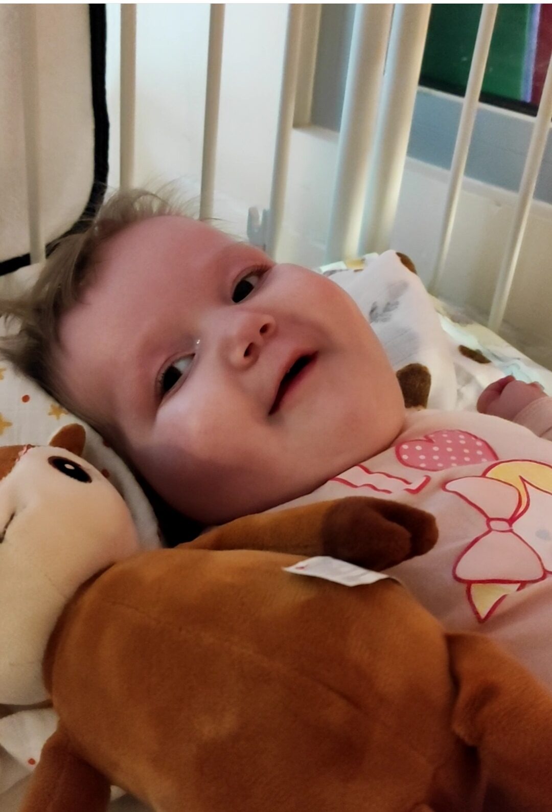 W konsekwencji tych zdarzeń wytworzyło się wodogłowie, które wymagało założenia zastawki komorowo-otrzewnej, problemy z żywieniem (założony PEG) oraz czterokończynowe porażenie spastyczne. Pola zmaga się z obniżonym napięciem mięśniowym, ma problem z utrzymaniem główki, nie siedzi ani nie chodzi samodzielnie. Niestety nie rozwija się również jej mowa. Nasza córcia jest pogodnym, wesołym dzieckiem, choć jej codzienność bywa bardzo trudna. Wiemy, że nas poznaje i cieszy się z każdej interakcji, ale nie potrafi przekazać, czego potrzebuje, czy coś ją boli lub, czy jest głodna. Pola uczęszcza do OREW, gdzie pod opieką specjalistów korzysta z różnych form terapii. Ponadto dzięki środkom uzyskanym z 1,5% podatku mogliśmy zapewnić jej dodatkową rehabilitację oraz zakupić sprzęt niezbędny do prowadzenia rehabilitacji domowej. Stopniowo małymi kroczkami naprawiamy wszystkie uszkodzenia, jednak jest to proces powolny i bardzo kosztowny. Dlatego też chcielibyśmy poprosić Was o wsparcie w zapewnieniu regularnej, rocznej rehabilitacji oraz koniecznego leczenia. Każda pomoc będzie dla nas na wagę złota i za każdą z całego serca dziękujemy!