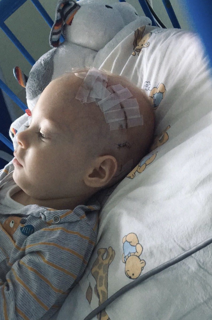 Mój stan długo był bardzo ciężki, lekarze dawali mi tylko 1% szansy na przeżycie… W mojej główce doszło do rozległego wylewu krwi, dlatego teraz muszę mieć wszczepioną zastawkę komorowo – otrzewnową. Przeszedłem aż 8 operacji główki.. oraz mnóstwo badań i zabiegów…