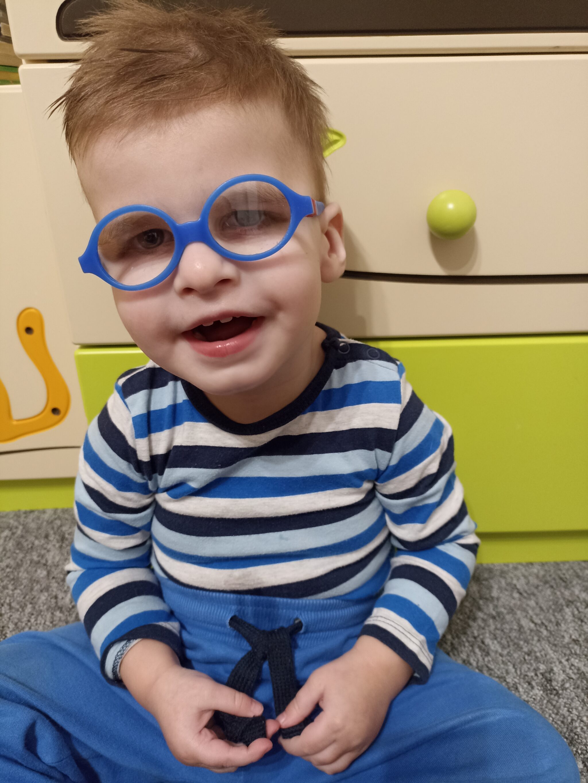 Kiedy 27 listopada 2019 roku urodził się nasz synek od razu został objęty specjalistyczną opieką pediatry ze względu na swoją stosunkowo niską (jak na przyjście na świat w terminie) i stale malejącą masę ciała. Całej sytuacji nie sprzyjał bardzo mały apetyt Szymonka, który z ogromnym trudem przyjmował choćby jedną porcję jedzenia. Z czasem zauważyliśmy, że synek nie chce leżeć na brzuszku, co również wzbudziło w nas niepokój. Rozpoczęliśmy więc rehabilitację równocześnie z diagnostyką synka. Szereg wykonanych badań wykazał u Szymonka hipoplastyczność ciała modzelowatego. Po wykonaniu badania WES wykryto u Szymonka bardzo rzadką chorobę DYRK1A.