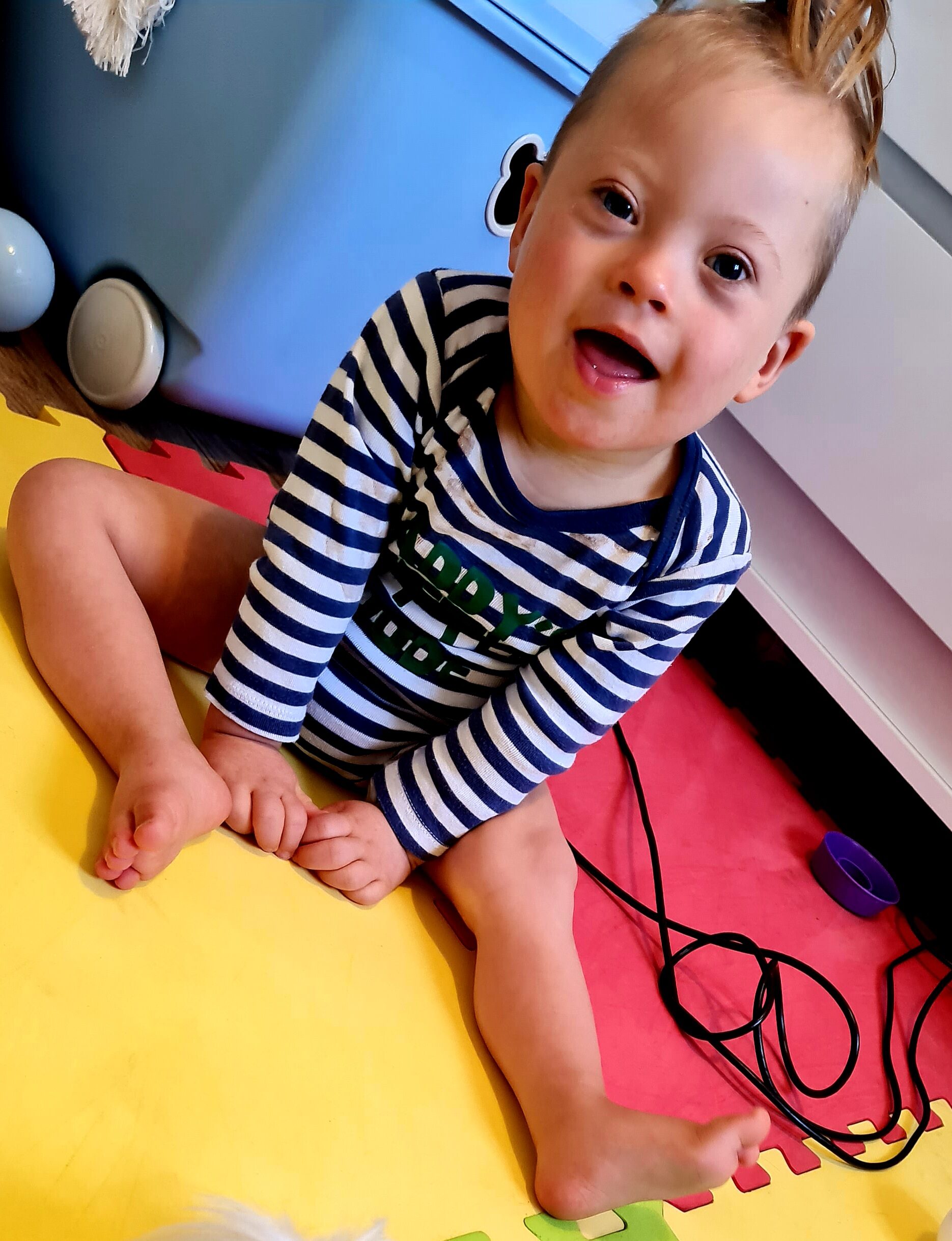 Witam, mam na imię Szymon i urodziłem się w kwietniu 2020 roku. Po porodzie zdiagnozowano u mnie trisomię 21, powszechnie znaną pod nazwą zespołu Downa.