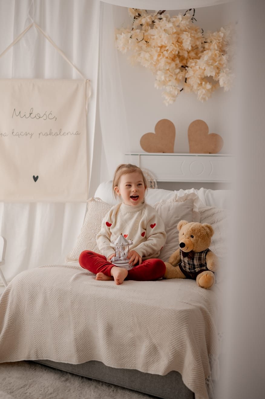 Witajcie! Mam na imię Tereska. Urodziłam się 21.09.2022r. Mając kilka miesięcy przeszłam poważną operację kardiochirurgiczną, ponieważ urodziłam się z wadą serca (AVSD), co jest często spotykane u dzieci z Zespołem Downa, który mam.