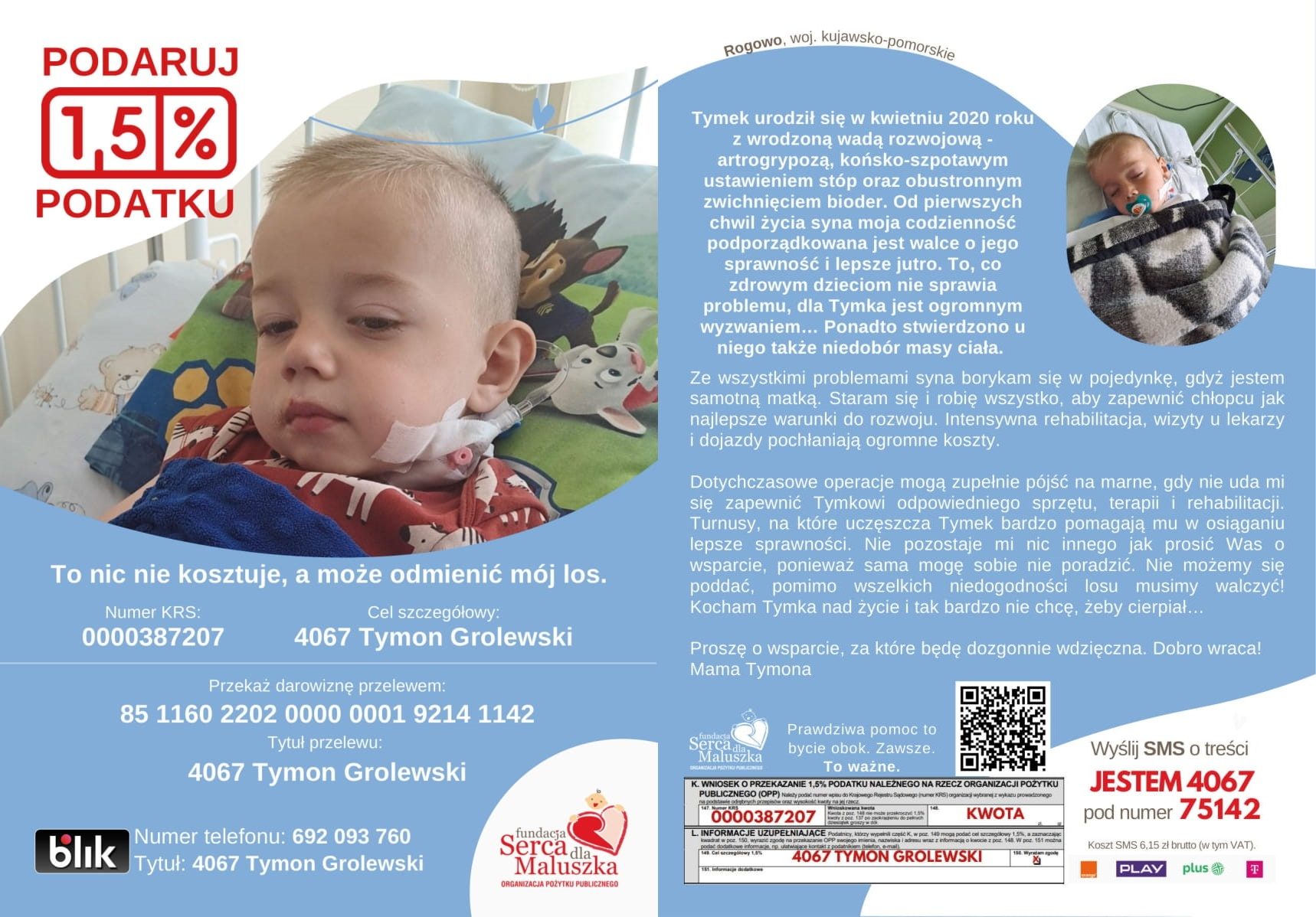 W rozliczeniu PIT wpisz numer KRS Fundacji „Serca dla Maluszka”: 0000387207,