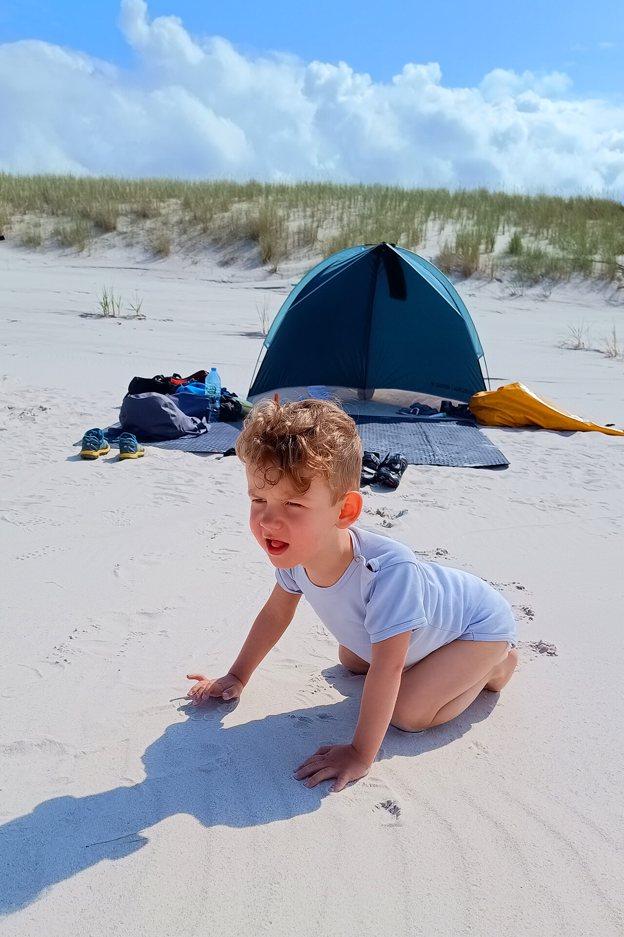 Ale uwaga! Żeby nie było, że nie mamy tu nic pozytywnego do napisania. Cały ostatni rok spędziliśmy na rowerze – udało się zakupić i zaadaptować dla Tymka przyczepkę, dzięki której poważne wyprawy to już pestka. Zdobyliśmy Klimczok, a nawet odcisnęliśmy opony na bałtyckiej plaży – a co! Nie damy się! 😉 – w sumie ponad 650 km wycieczek i poznawania świata. Tymcio zaczyna też wymawiać pierwsze proste zdania, fascynuje się elektronarzędziami taty, uwielbia zajęcia z konikiem Pola. Ponadto jest smakoszem tranu w każdej postaci.