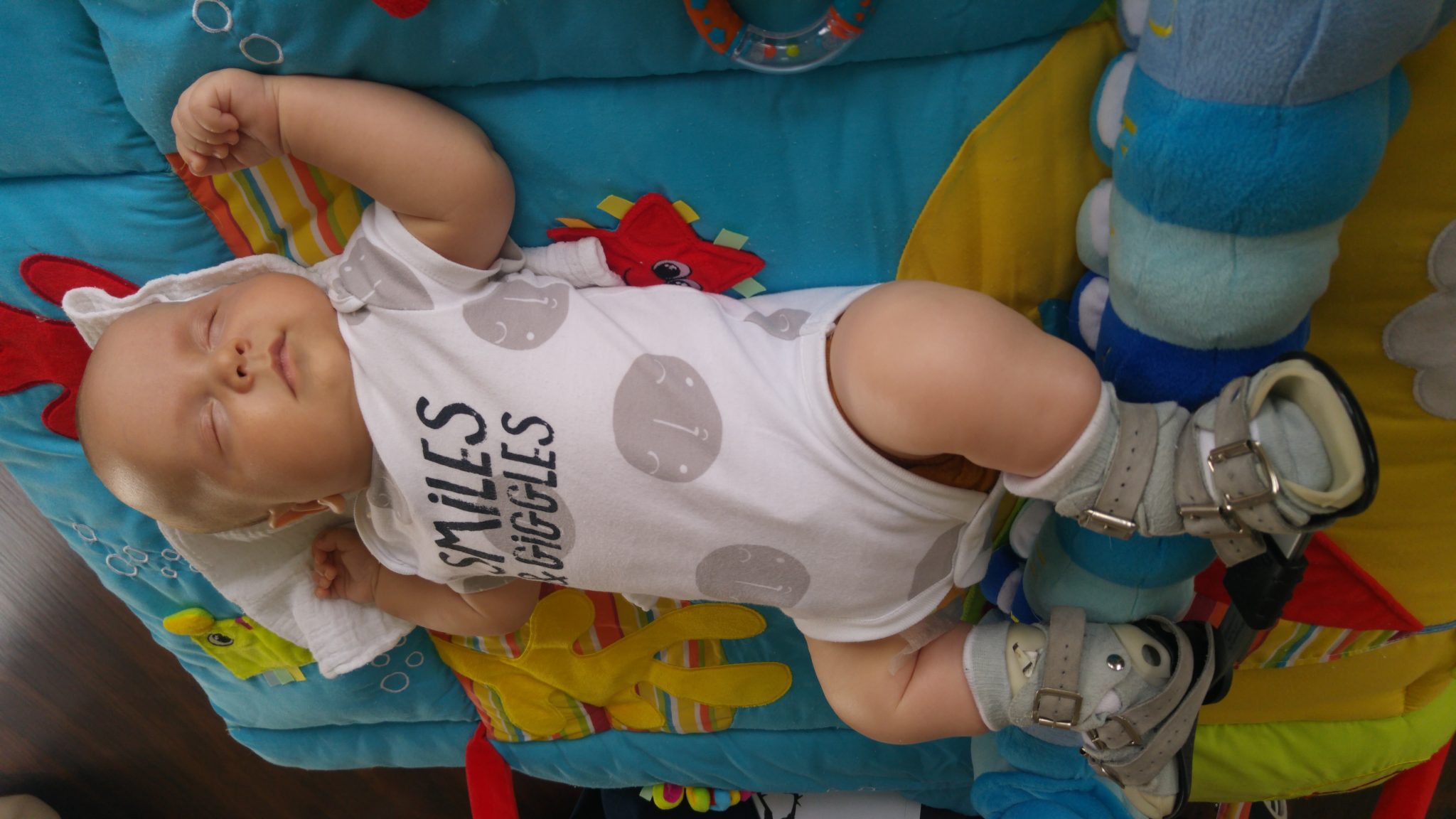 Jestem Tymek i urodziłem się z supermocą, ale też z wadą stóp. Od narodzin non stop miałem zakładane gipsy, jednak za sprawą swojej supermocy z wszystkim radziłem sobie wyśmienicie. Dzięki gipsom i tenotomii ścięgien Achillesa moje stopy zostały skorygowane. Leczenie jednak się nie zakończyło, gdyż od tej pory przez najbliższe 4 lata całymi dniami i nocami zakładałem magiczne buty, aby móc w nich zmieniać świat. Obecnie mam 7 lat, wyrosłem już z magicznych butów, ale supermoce nadal są w moim posiadaniu. Lekarze twierdzą, że wada stóp nawraca, straszą operacją, ja jednak wiem, że dam sobie z tym radę i dzięki codziennym terapiom, jakie wykonuję razem z mamą, wywalczę zdrowe stopy.