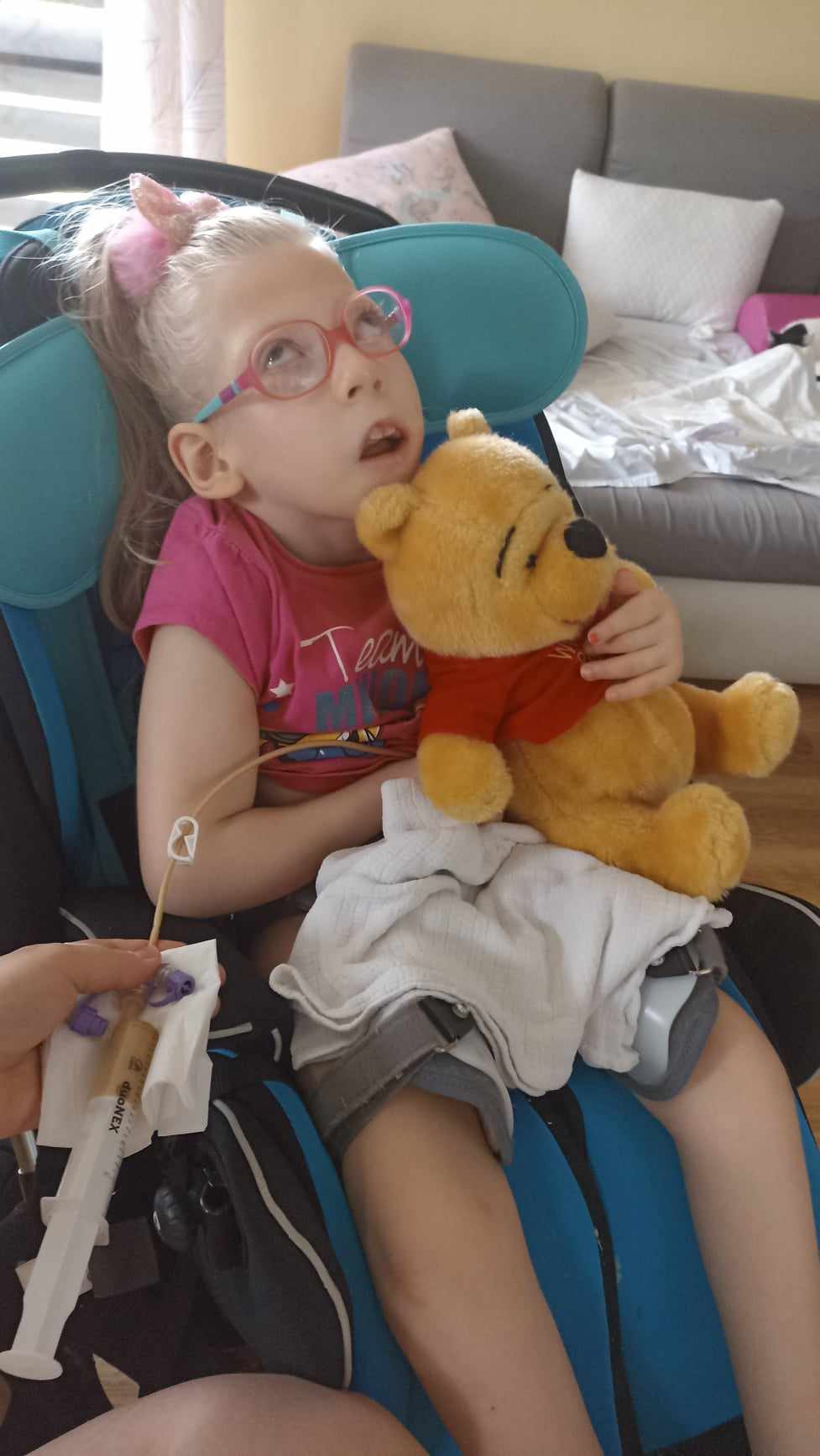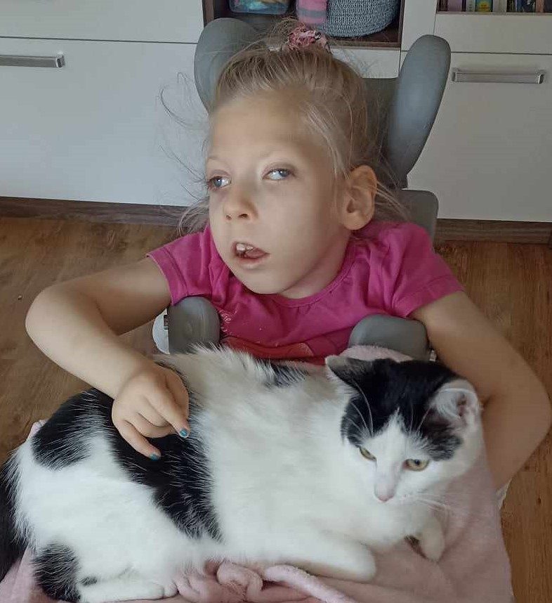Każdy dzień to nieustanna walka o przyszłość Weroniki. Córeczka obecnie ma 7 lat, jest całkowicie niesamodzielna i karmiona za pomocą gastrostomii PEG. Nie mówi i nie pokazuje, wiec komunikacja z Werą jest bardzo trudna. Przeszła wiele infekcji i napadów padaczkowych, które wyłączyły ją z rehabilitacji i powodowały większe opóźnienia rozwoju. Wymaga stałej opieki, jest pod nadzorem fizjoterapeuty, neurologopedy, rehabilitanta wzroku. Potrzebuje ortez na rączki, nogi, gorsetu stabilizacyjnego, pionizatora, wózka.