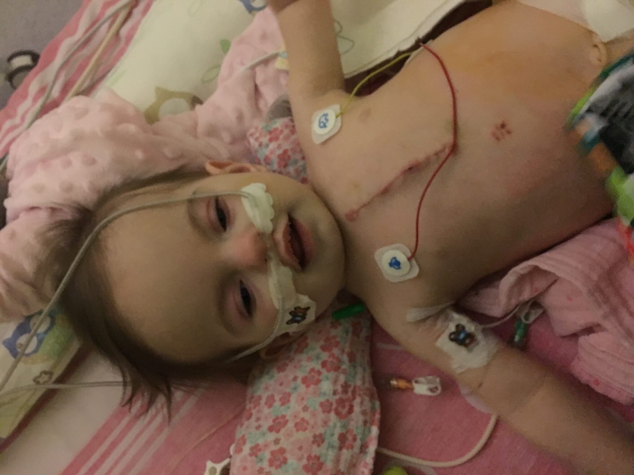 Lekarze rozpoznali u naszej córeczki szereg przypadłości: wodogłowie, zarośnięty odbyt, wrodzoną wadę serca, zwaną tetralogią Fallota, wrodzone wodonercze, odpływ moczodowo – pęcherzowo – nerkowy, agenezję lewej nerki, pęcherz i jelito neurogenne. Ponadto u naszej córeczki zdiagnozowano niedoczynność tarczycy, niedrożność dróg łzowych, zez obuoczny, refluks żołądkowo-przełykowy, wady kręgów i dodatkowe żebra.