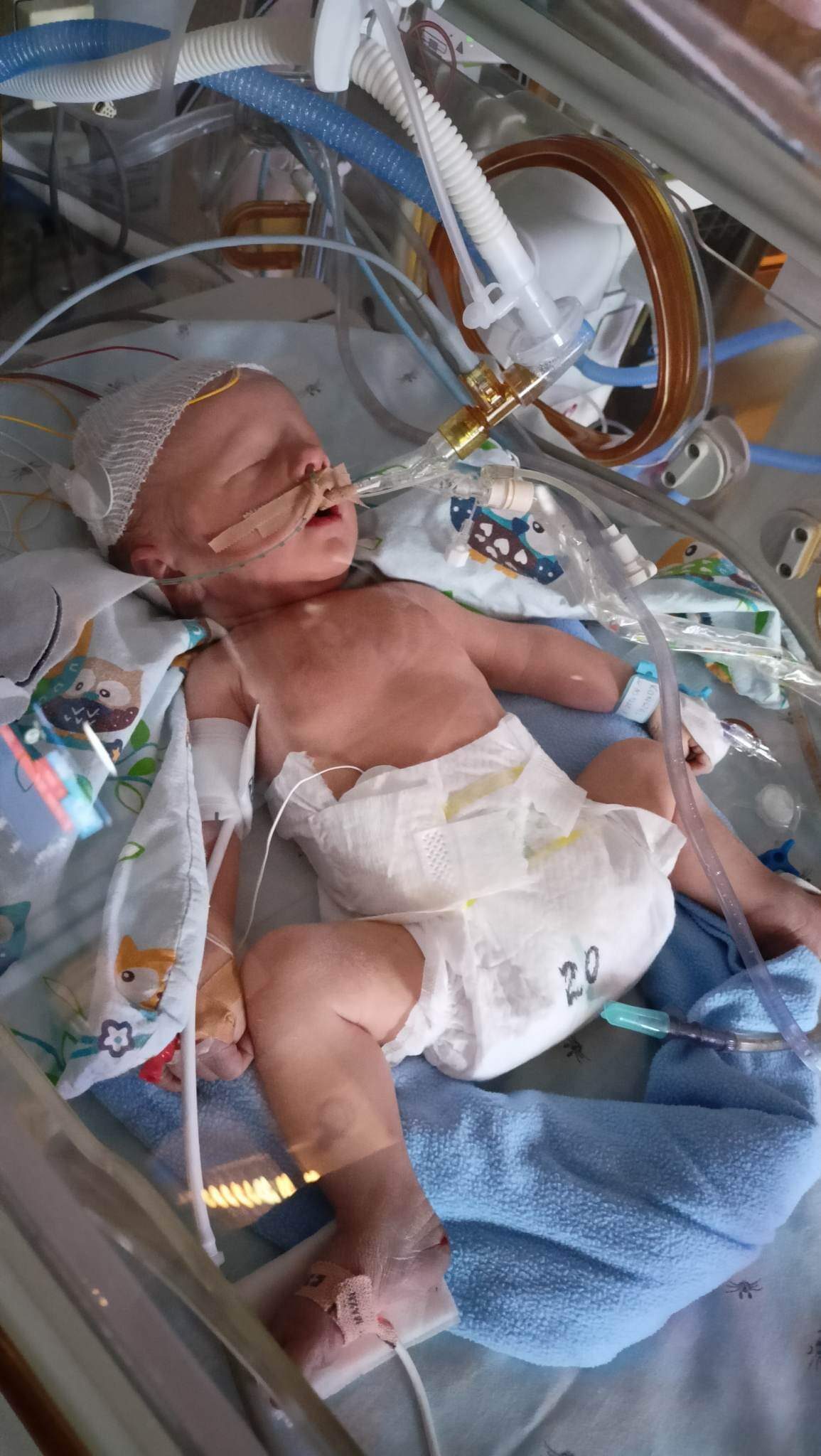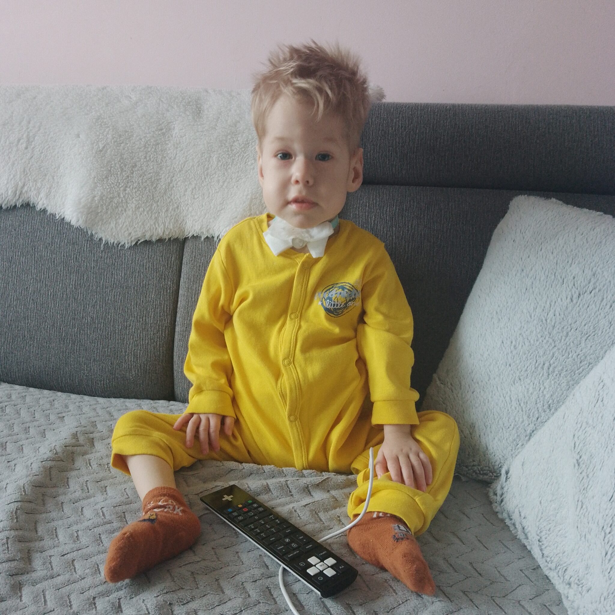 Wojtuś urodził się 10 grudnia w 2022 roku miały to być nasze najpiękniejsze, długo wyczekiwane święta Bożego Narodzenia. Cała ciąża przebiegała prawidłowo i dlatego też nikt nie spodziewał się takiego jej rozwiązania. Synuś urodził się w ciężkiej zamartwicy w bardzo złym stanie, był siny i wiotki. Już na sali porodowej podjęto czynności reanimacyjne i próbę intubacji. Od razu po porodzie zostaliśmy rozdzieleni, Wojtuś został przetransportowany na OIOM, gdzie przebywał 4 m-ce. Do dziś nie jestem w stanie opisać cierpienia, jakie we mnie rosło z powodu rozłąki. Był to dla nas bardzo ciężki czas, pełen rozpaczy, strachu, niepewności co przyniesie nam jutro. U synka diagnozowano niewydolność oddechową, obniżone napięcie mięśniowe oraz podejrzenie miopatii. Badania genetyczne są nadal w toku. Były lepsze i gorsze dni – Wojtuś przez długi czas wymagał sztucznej wentylacji, przeszedł zabieg tracheotomii, a z powodu zaburzonego odruchu połykania został podłączony do systemu PEG. Na tą chwilę wiemy tyle, że czeka nas długa rehabilitacja i szereg specjalistycznych wizyt między innymi u neurologa i neurologopedy. Musimy być gotowi na każdą ewentualność. Dlatego bardzo Was prosimy o Wasze wsparcie i pomoc, by móc walczyć o Wojtusia, o jego sprawność i lepsze życie.