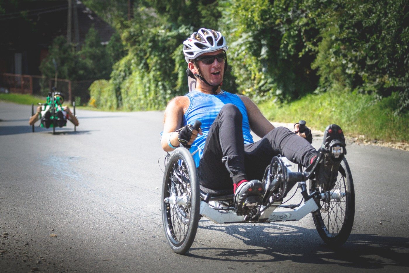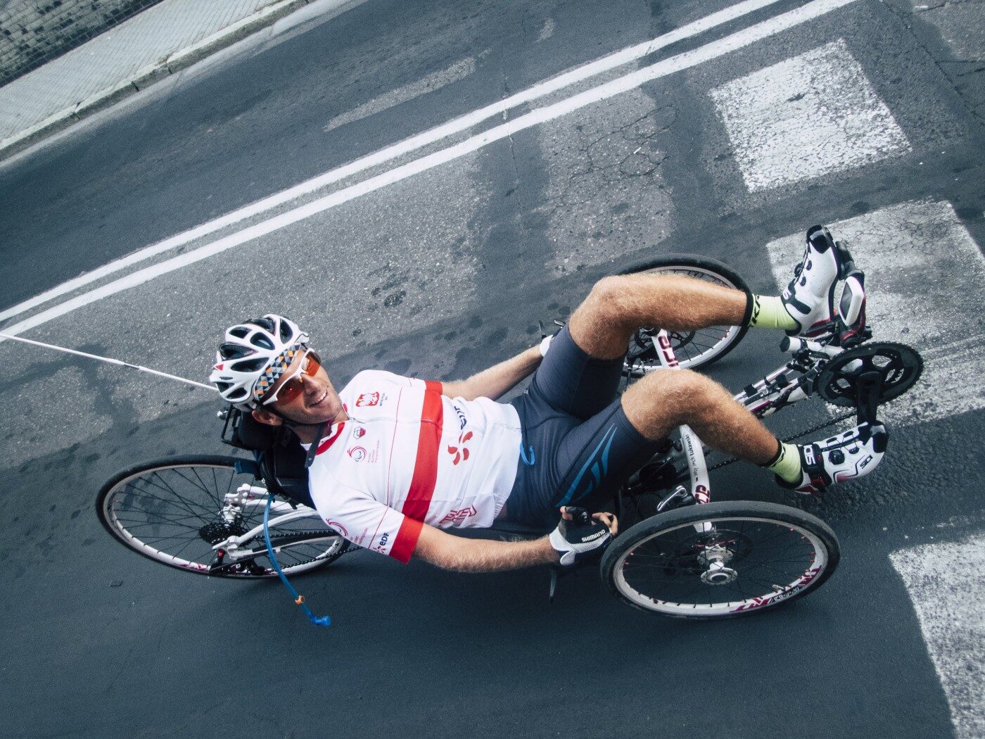 Moją pasją jest sport, który nie tylko daje mi dużo satysfakcji i siły do życia, ale też znacznie wspomaga rehabilitację. Od najmłodszych lat zamiast wózka inwalidzkiego, używałem różnych pojazdów dla dzieci: handbike’ów, chodzików, 3 kołowych rowerków rehabilitacyjnych i 4 kołowych gokartów. Bardzo ich pilnowałem bo to były ,,moje mechaniczne nogi” i bez nich nie potrafiłem się poruszać. Obecnie w terenie przemieszczam się na poziomym rowerze trójkołowym tzw. recumbent tricycle. Na moim rumaku czuję się wolny i niezależny. Na krótszych odległościach korzystam z kijków typu Nordic walking.
