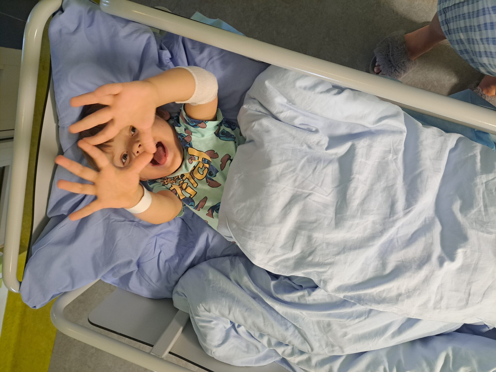 Nasz syn, Wojtuś, zmaga się z Mózgowym Porażeniem Dziecięcym (MPD) w postaci prawostronnej hemiparezy spastycznej, będącej skutkiem niedotlenienia mózgu podczas trudnego porodu. Wojtuś urodził się owinięty pępowiną wokół szyi. Konieczna była interwencja próżniociągiem, niestety podjęta zbyt późno. W konsekwencji doszło do trwałych uszkodzeń neurologicznych, które wymagają codziennej, dożywotniej rehabilitacji.
