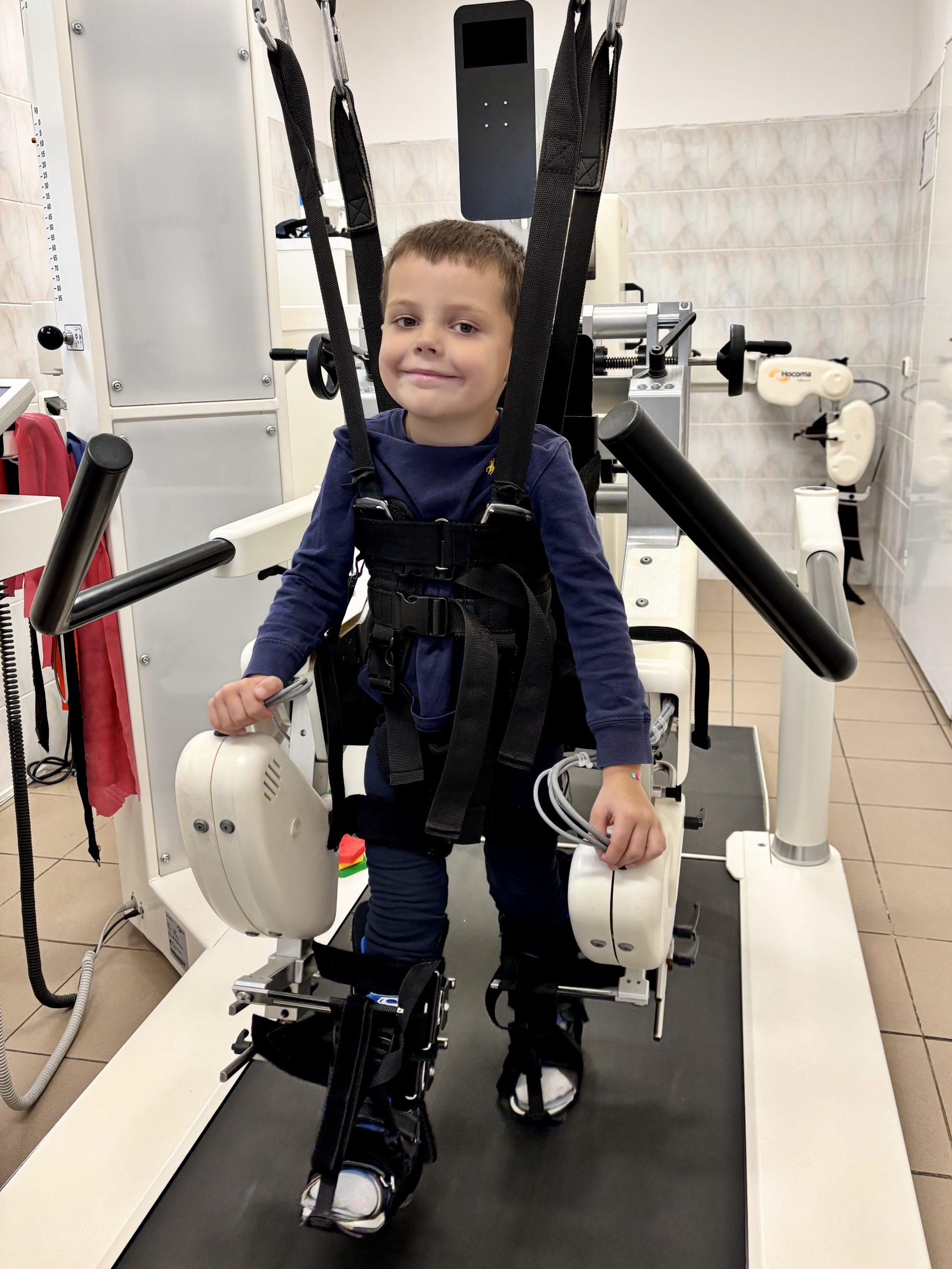 Aby spowolnić postęp spastyczności, rozpoczęliśmy terapię toksyną botulinową w Warszawie. Zakupiliśmy również niezbędny sprzęt rehabilitacyjny – w tym matę wibracyjną GALILEO oraz ortezy.