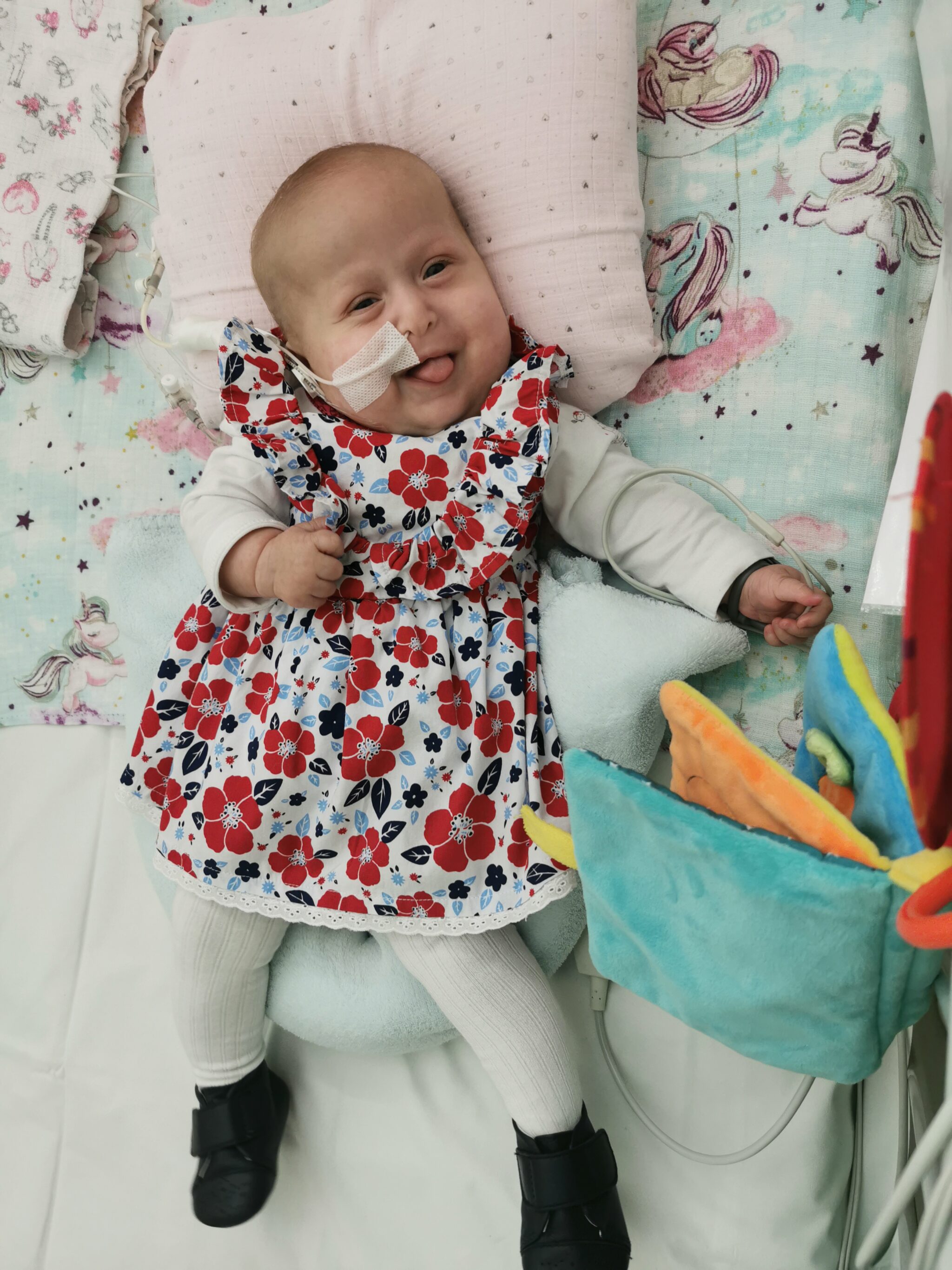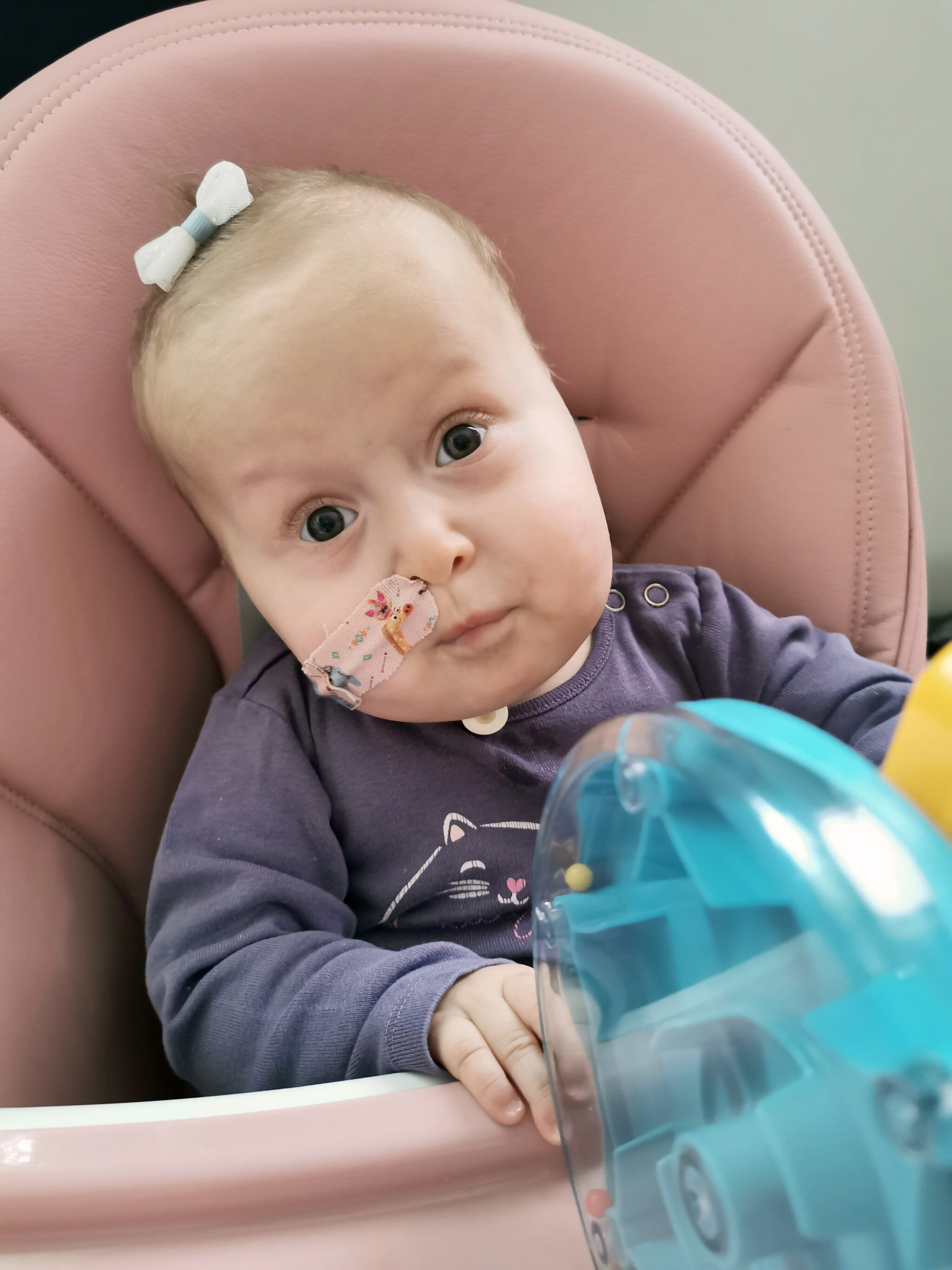 Dziś, mimo tak trudnego początku, robi postępy i z ogromną determinacją dąży do samodzielności. Je już buzią, uczy się pić i każdego dnia pokazuje, jak wielką ma siłę.