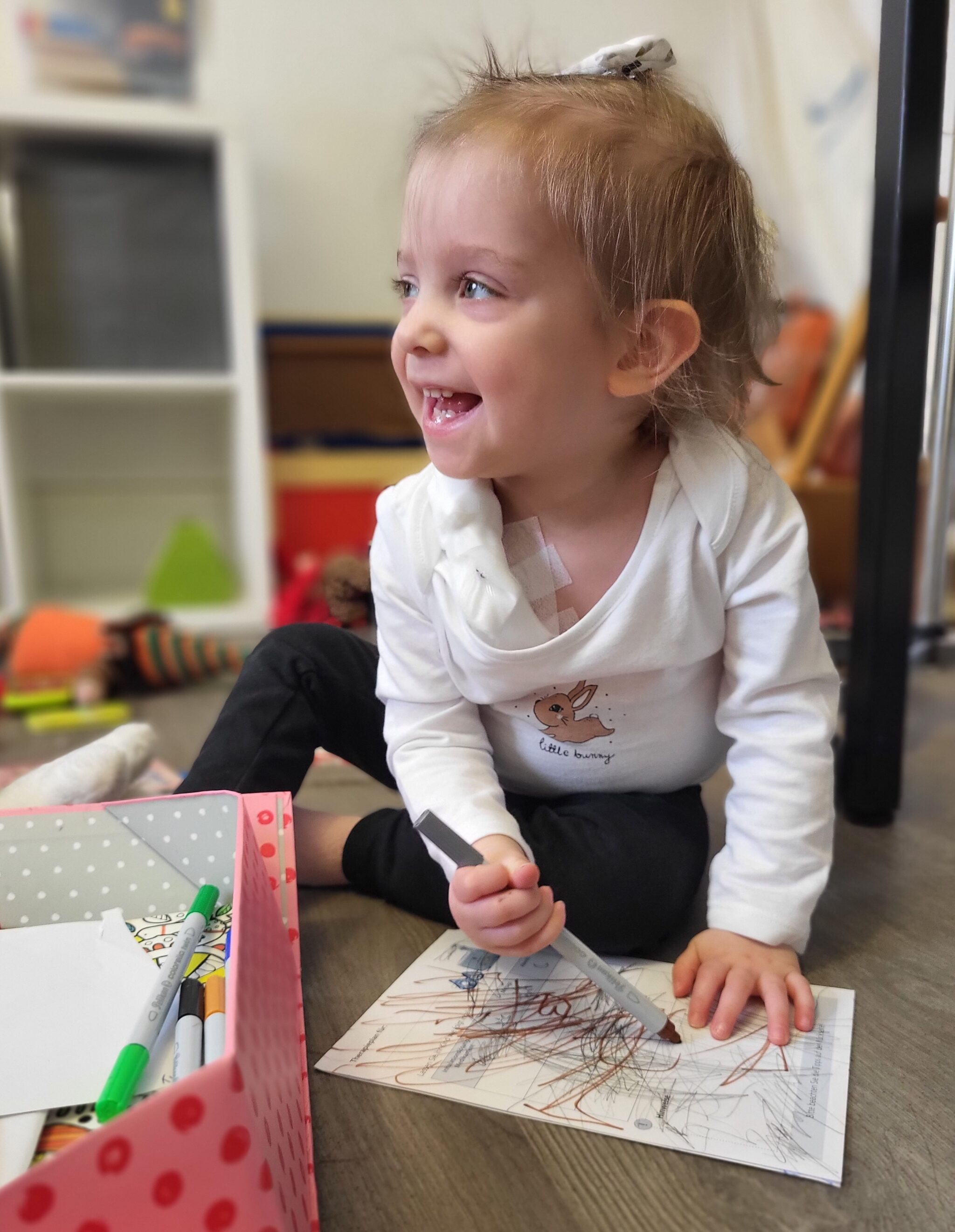 Leczenie i choroba to dla Zuzi dwie ogromne przeciwstawne siły, które wciąż ze sobą „walczą”. Oprócz kroplówek i innych leków Zuzia ma regularną rehabilitację i zajęcia z neurologopedą. Od stycznia 2025 r. wspiera nas również hospicjum domowe Promyczek – zespół wspaniałych specjalistów, którzy pomagają nam w tej trudnej walce.